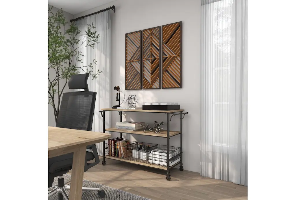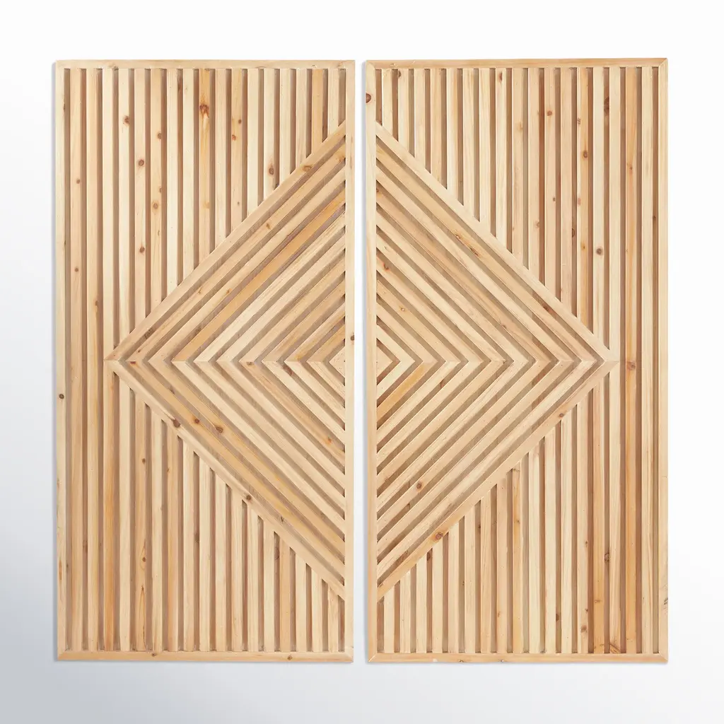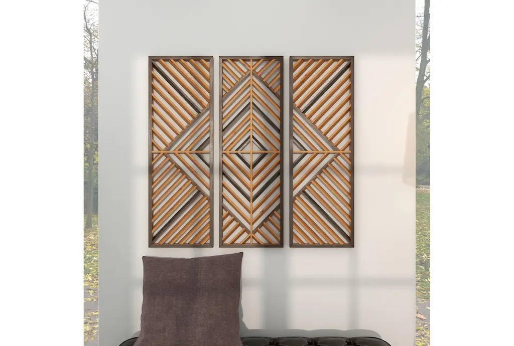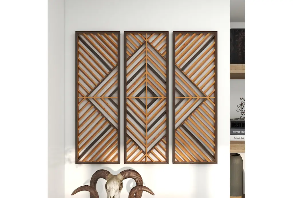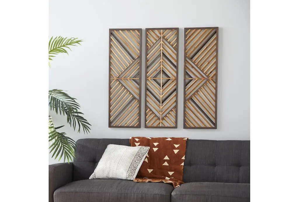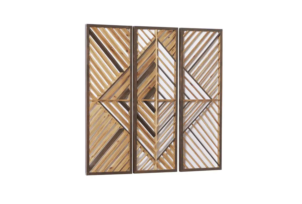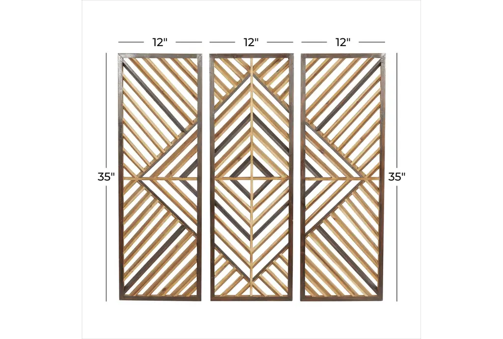 12x36 Inch Brown Wood Geometric Wall Decor | Set Of 3