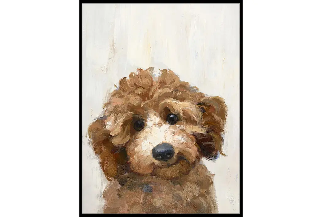 This charming 14X18 Golden Doodle framed art piece brings warmth and character to any space. The brown and white hues create a soft and inviting atmosphere, perfect for any animal lover. The rustic style and natural colors will enhance your home decor beautifully.