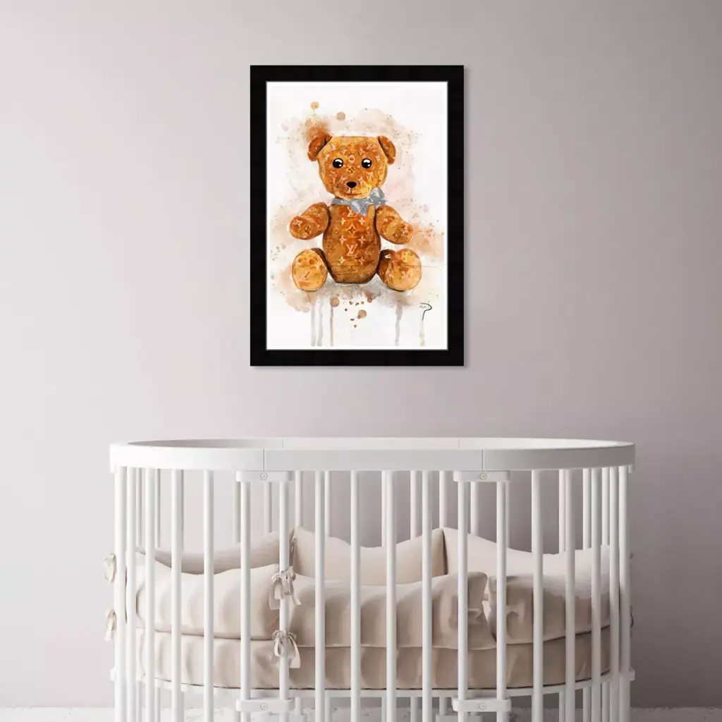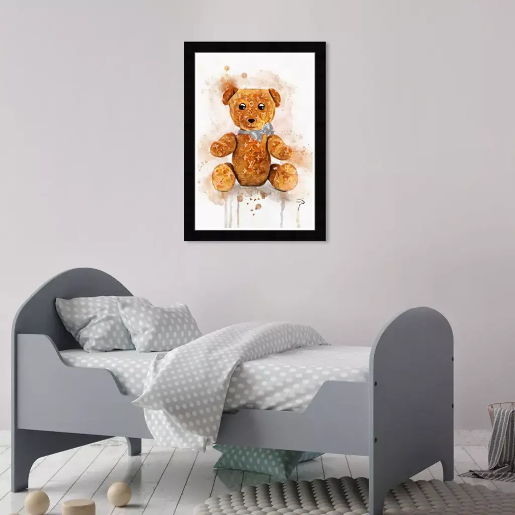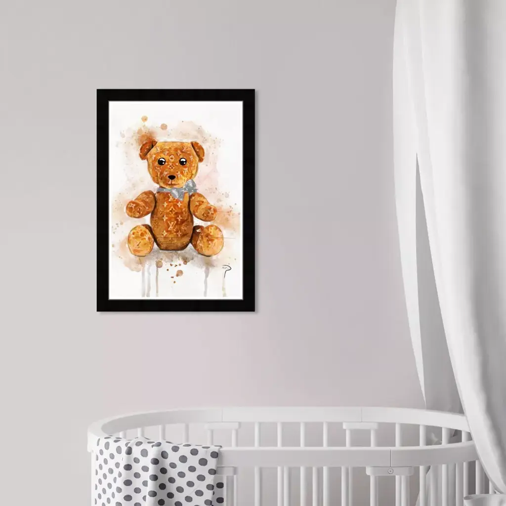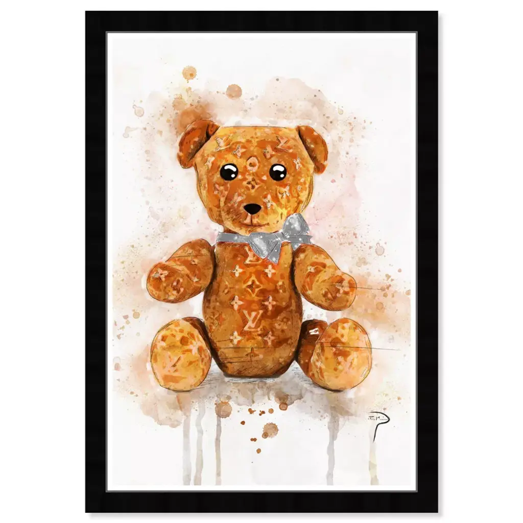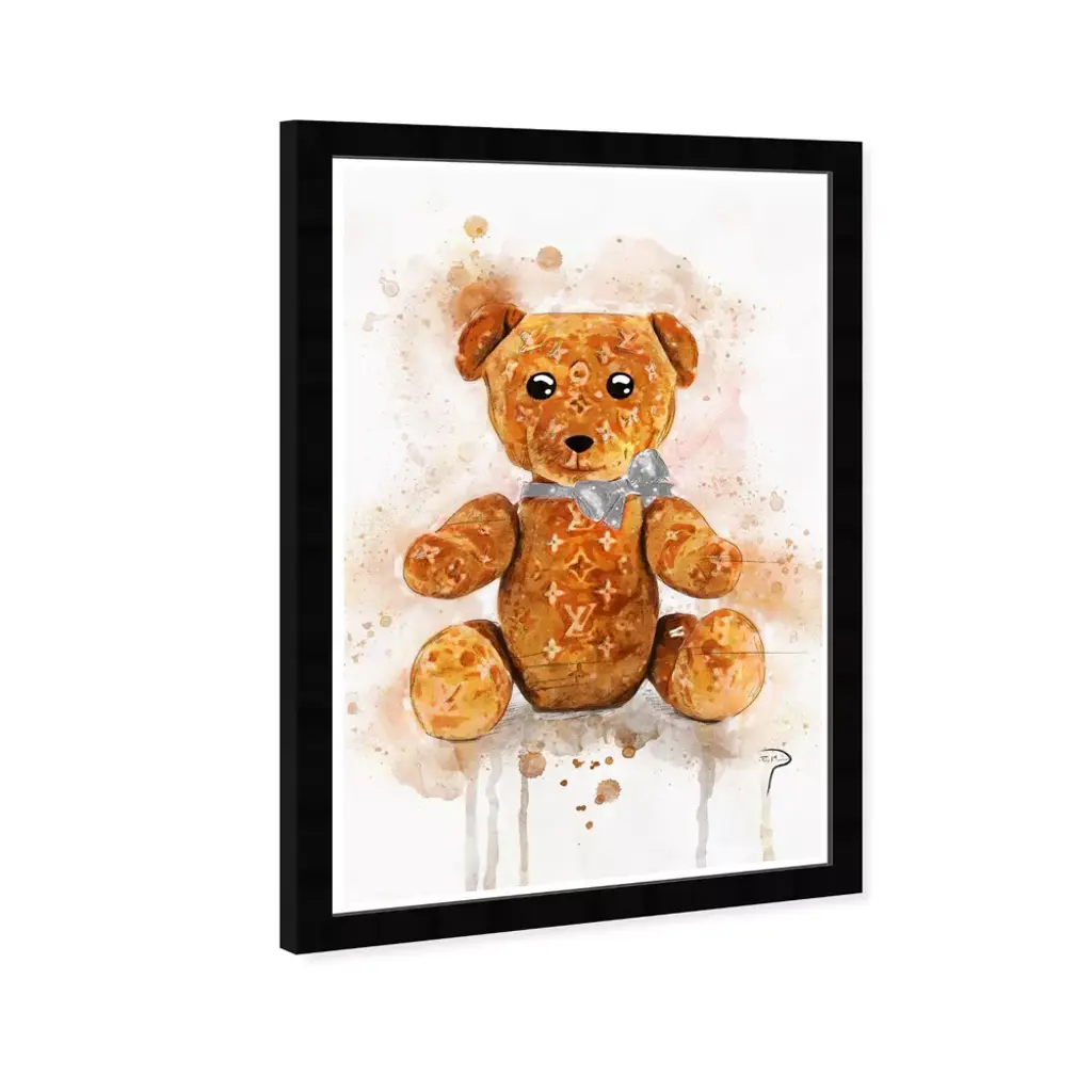 Wynwood Studio 15"x21" Pily Montiel Teddy Bear Symbols And Objects Framed Art Print: Modern Digital Art, Entertainment Theme, Black Frame