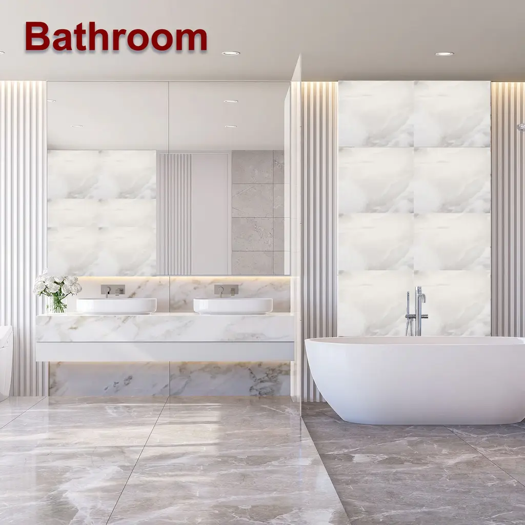 Made from a durable PVC+XPE composite, this peel-and-stick tile backsplash is not only waterproof and moisture-resistant but also exceptionally durable. Good for kitchens and bathrooms, it retains its aesthetic appeal over time, providing a long-lasting and stylish decor solution.Minimal maintenance, effortlessly maintain a fresh appearance, simply wipe clean the peel and stick marble wall panels with a damp cloth to keep these tiles looking great, making them practical for busy households. Elevate the look of your home with a refined, elegant marble aesthetic.Peel and stick marble wall tiles are multi-functional and can be easily applied to enhance the aesthetic of various surfaces in kitchens, bathrooms, and living areas, offering a quick and stylish upgrade without the need for extensive renovation.These peel and stick shower wall backsplash tiles feature a self-adhesive backing for easy, hassle-free installation. Just peel off the backing and stick the tiles to any clean, dry surface—no grout or special tools required. Great for quick and effortless updates to your space.