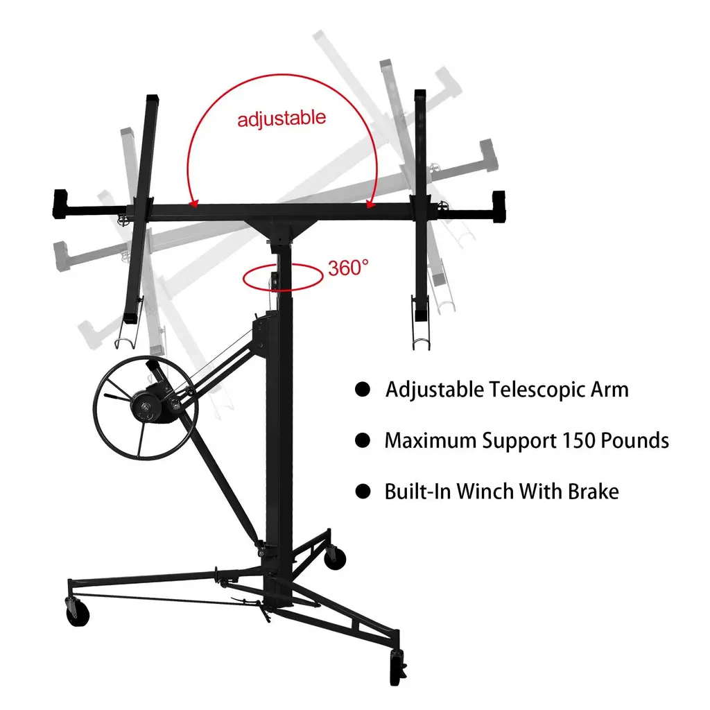 16 Ft. Drywall Panel Hoist Lifter Panel Lifter With Extension Combo - Black