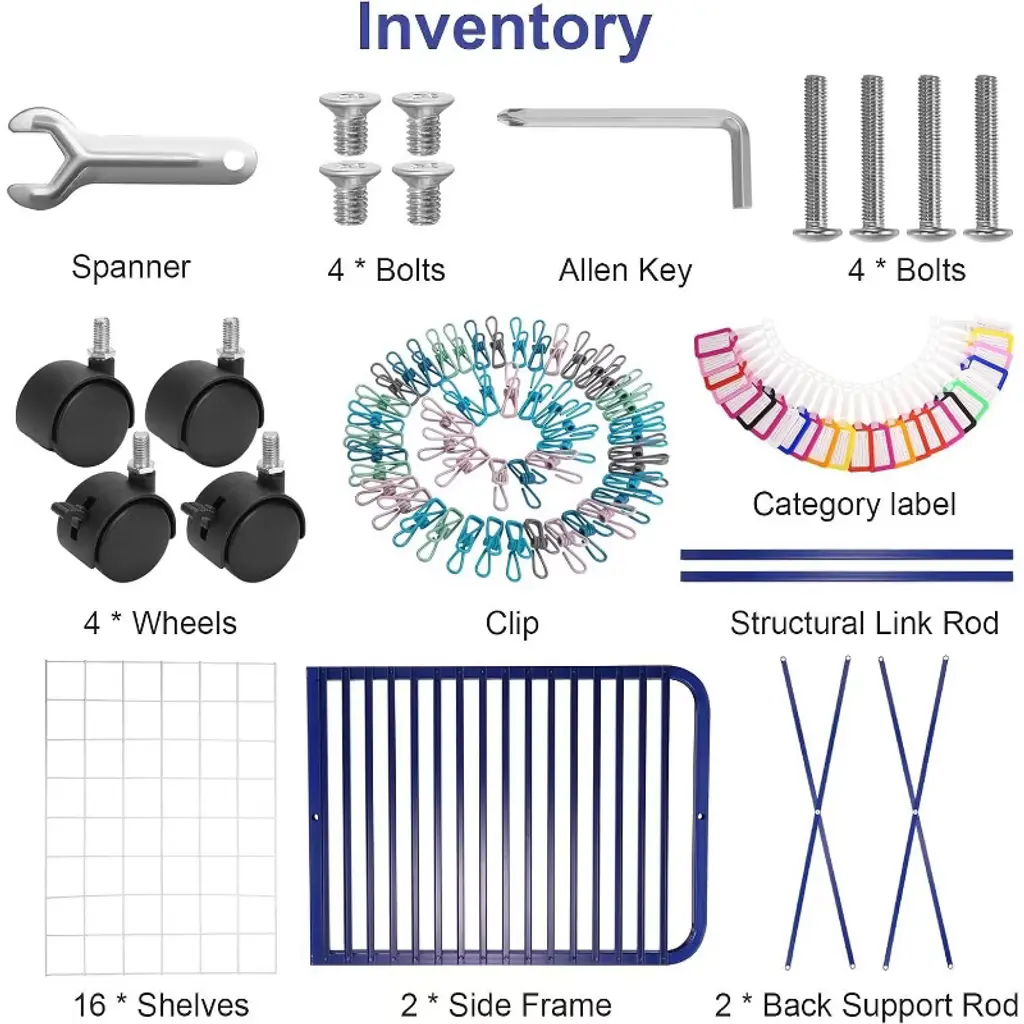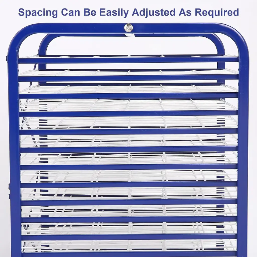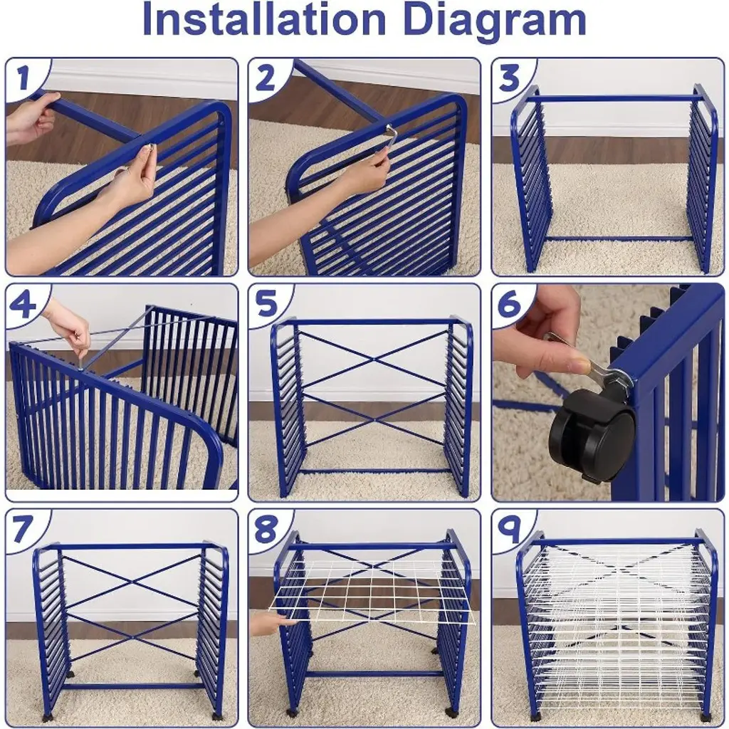 Ideal for classrooms and art studios with its efficient organisation and portable design, this multi-functional art drying rack with 16/25 removable shelves is suitable for drying paintings of all sizes and is the ideal storage solution for organising painting supplies and projects. Designed to fit into limited spaces and provide ample storage without taking up too much space, the compact design allows it to fit perfectly into home and classroom environments, maximising the use of available space. As a dedicated painting drying rack, it ensures optimal airflow for fast and even drying, allowing you to display or continue working on your artwork immediately, enhancing your creative workflow. Equipped with four lockable wheels for easy movement around the studio or classroom, the wheels ensure stability when in use, making it a convenient and reliable solution for organising your art supplies. Assemble in just three steps: screw the bottom and top frames together, install the three wheels, and place the shelves for immediate use without the time-consuming complexity of assembly. Whether it's functional design or portability, this drying rack offers both efficiency and flexibility, making it ideal for everyday use.