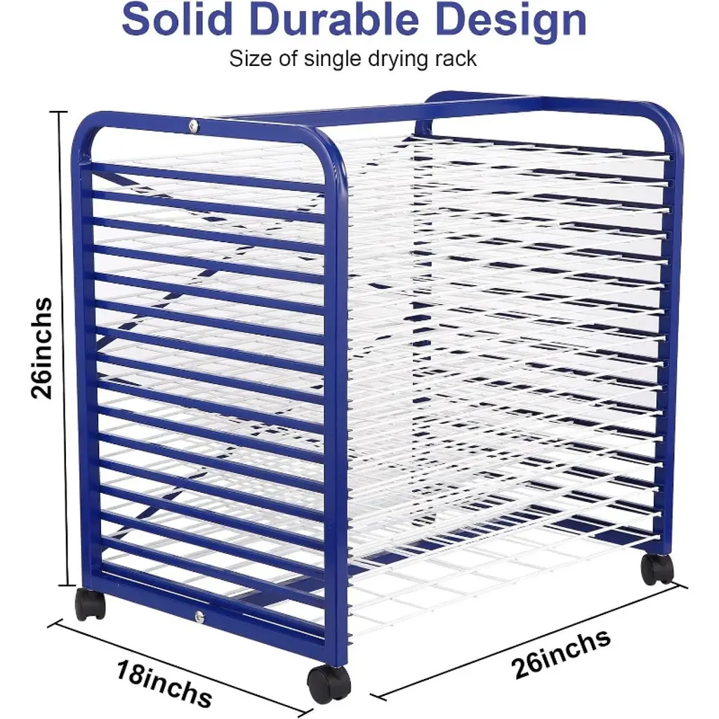 16 Tier Art Drying Rack With Removable Shelf, Mobile Paint Drying Rack / Canvas Organiser, Art Studio & Classroom, 18" D X 26" W X 26" H