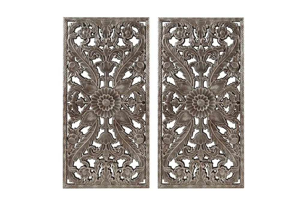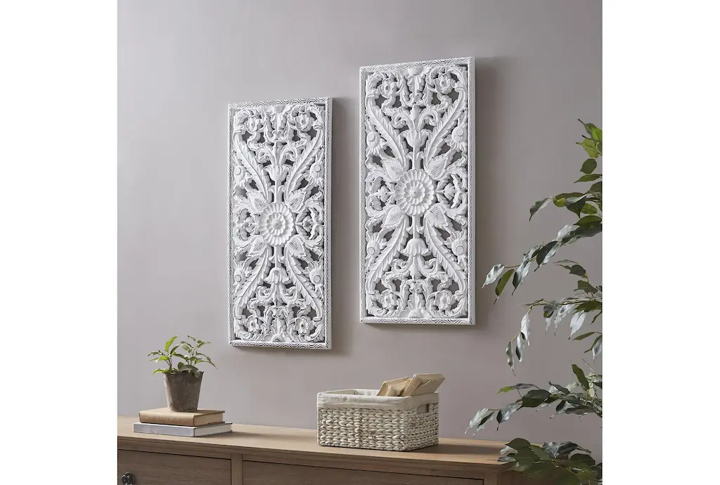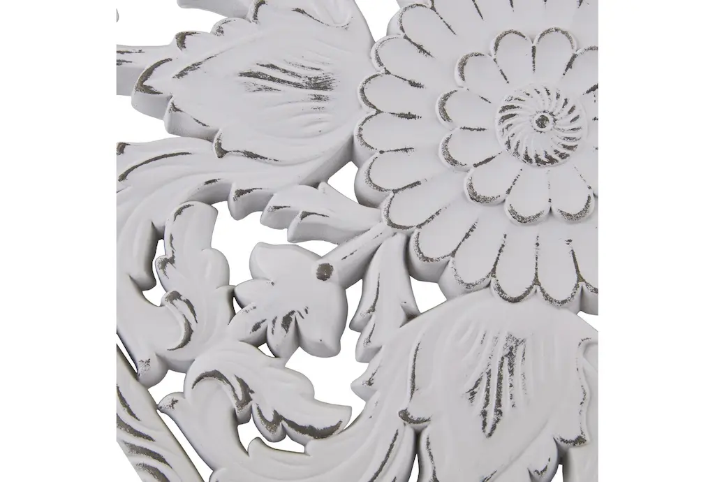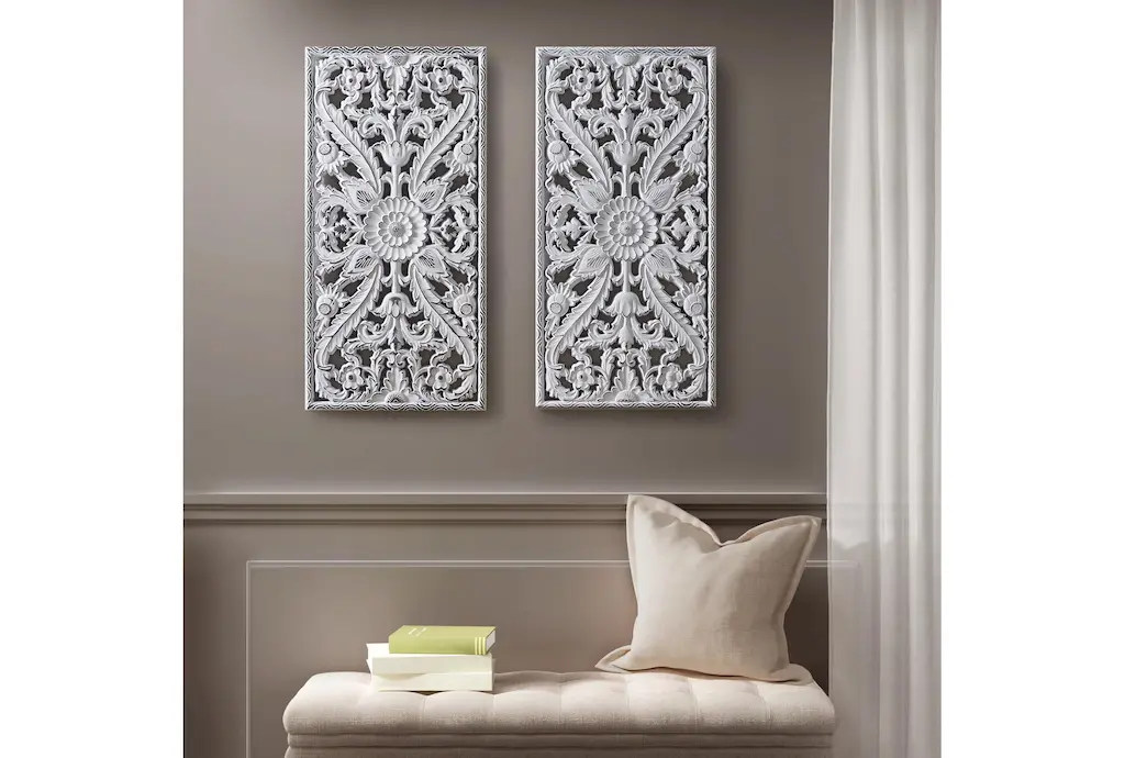 16x32 White Distressed Natural Mdf Wood Botanical Floral Hand Carved Dimensional Wall Panel | Set Of 2 | Rectangle | Sets