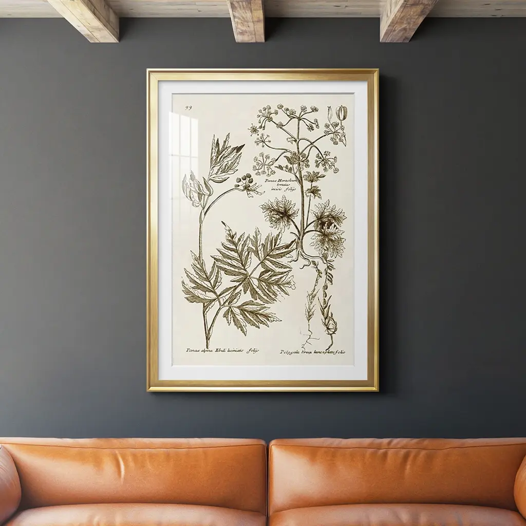 17th Century Leaf Studies I features a finely detailed botanical illustration inspired by 17th-century horticultural art, highlighting the delicate beauty of plants with intricate lines and a muted, natural color scheme.