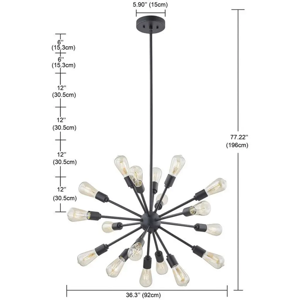 18-light Soft Black Finish Modern Indoor Sputnik Chandelier