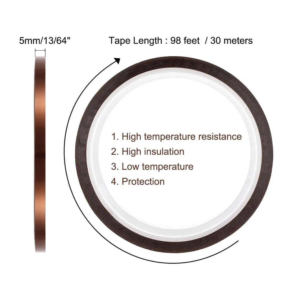 180c-200c High Temp Tape 13/64 Inch X 98ft Heat Resistant Polyimide Tape 4Pcs - Brown - Brown