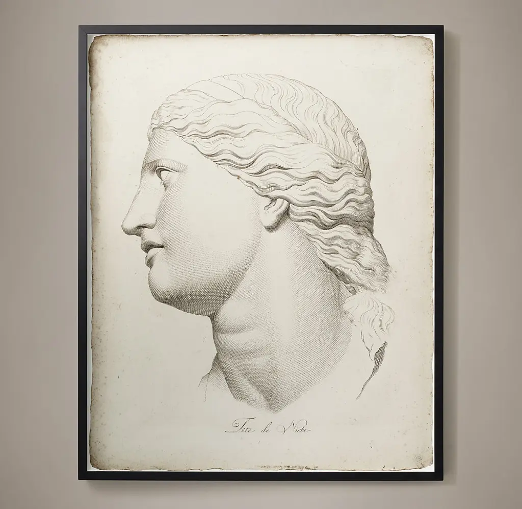 18th-century Italian printmaker Giovanni Volpato made these drawings based on ancient Greek sculptures. Focusing solely on expressive faces, Volpato used modulated lines and deft cross hatching to convey the look of stone. The large scale of our reproductions adds drama and presence.