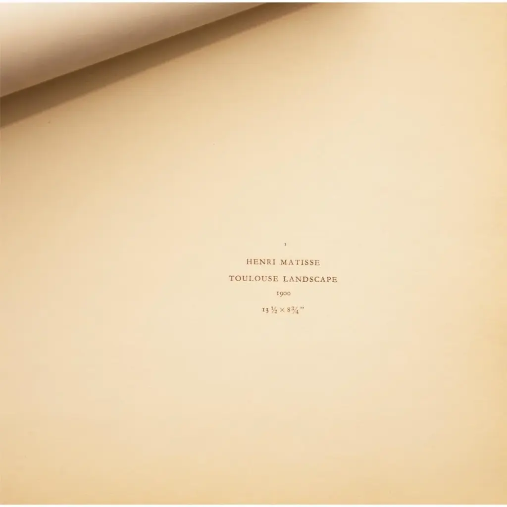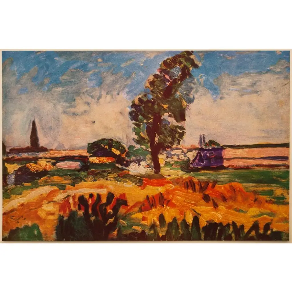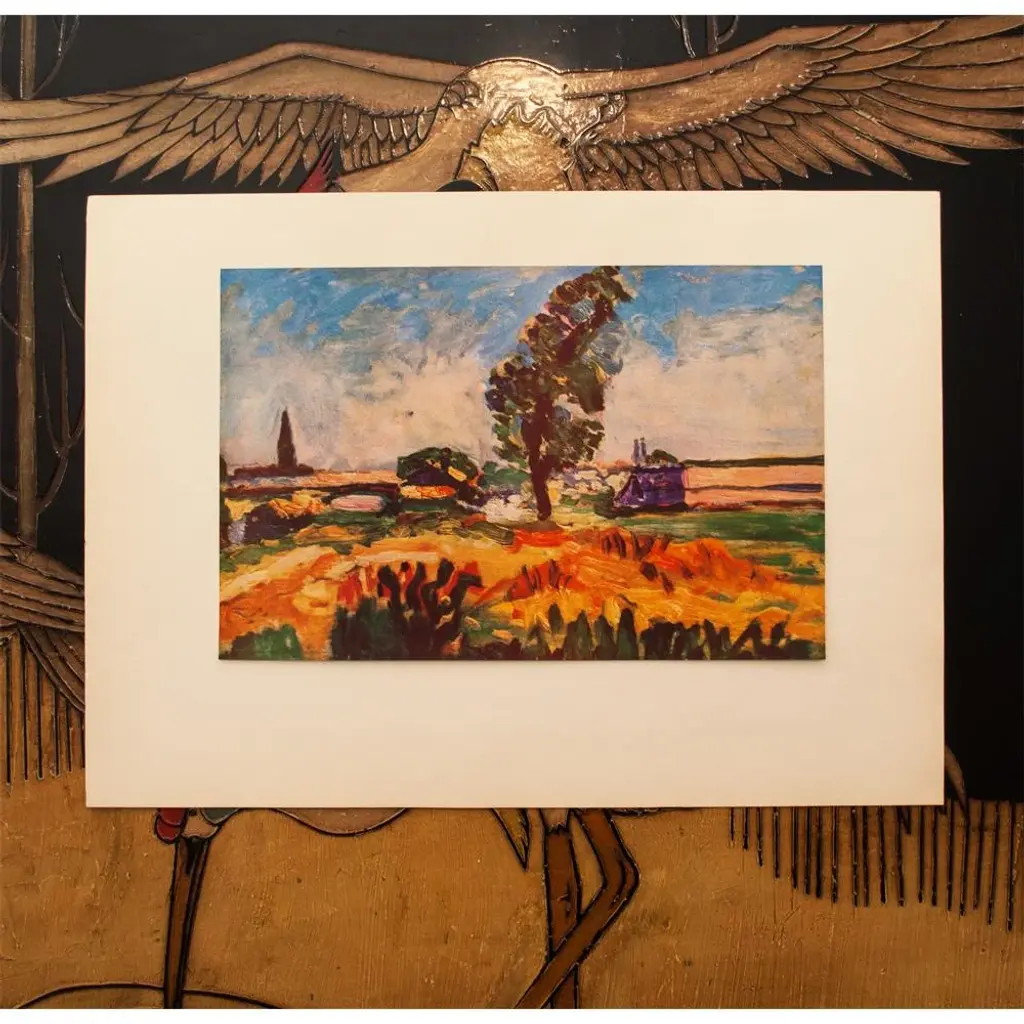 A stunning First Edition period offset lithograph, print, after oil painting "Toulouse Landscape" (1900) by Henri Matisse. Comes from a rare First Limited Edition folio of the artist published by Albert Skira in Geneva, Switzerland in the 1940s. Printed on one side. Hand tipped-in on a board of heavy paper. Information regarding the original artwork is printed under the piece. Detailed. Colors are brilliant! Excellent condition - minor edge wear on the board, never framed. Overall 15"W x 11"H Image 10.45"W x 7"H