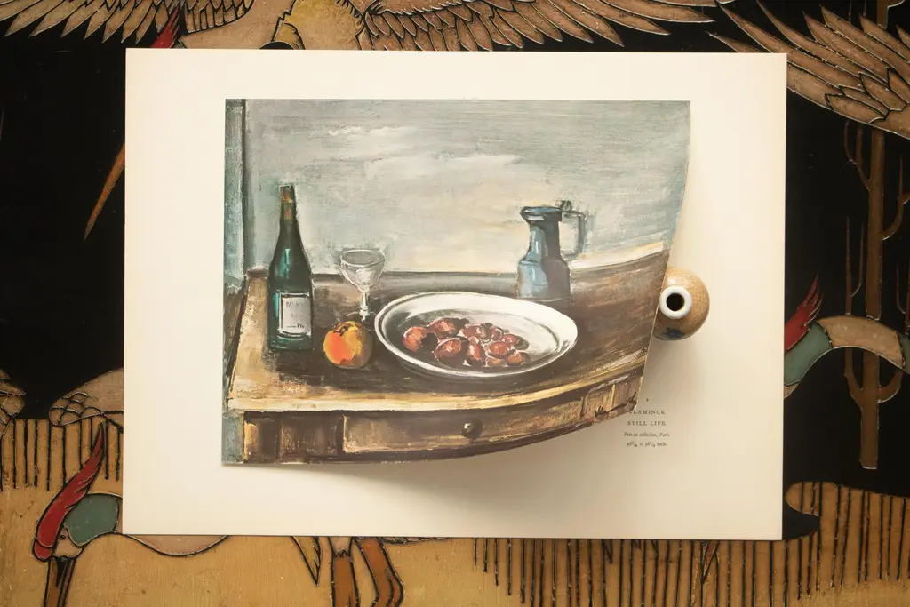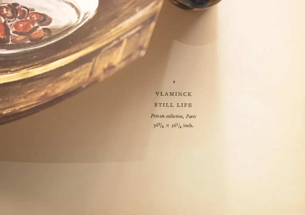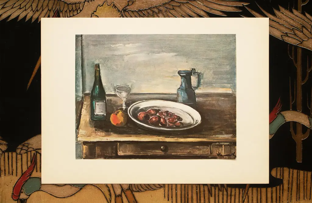 A stunning First Edition period offset lithograph, print, after painting "Still Life" by Maurice Vlaminck (1876-1958). Comes from a First Limited Edition art folio published by Albert Skira in Switzerland, in the 1940s. Printed on one side. Hand tipped-in on a board of heavy paper. Information regarding the original artwork will be found by lifting the piece. Superb quality. Excellent condition of the print, minor age wear and light tanning on edges of the board, never framed. Image 10.5"W x 8.25"H