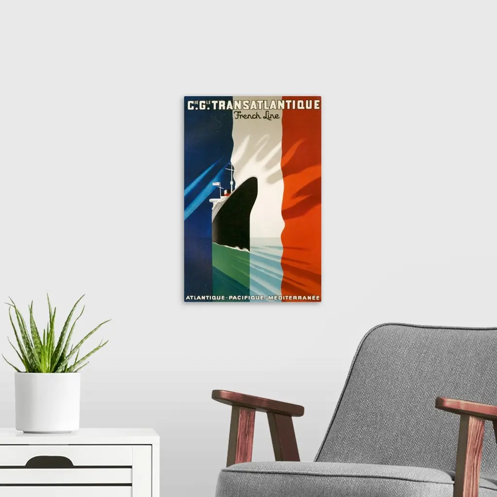 1940's France Transatlantique French Line Poster wall art for home and office decor. Discover canvas art prints, photos, mural, big canvas art and framed wall art in GreatBigCanvas.com's varied collections.