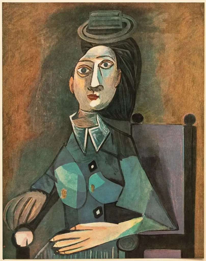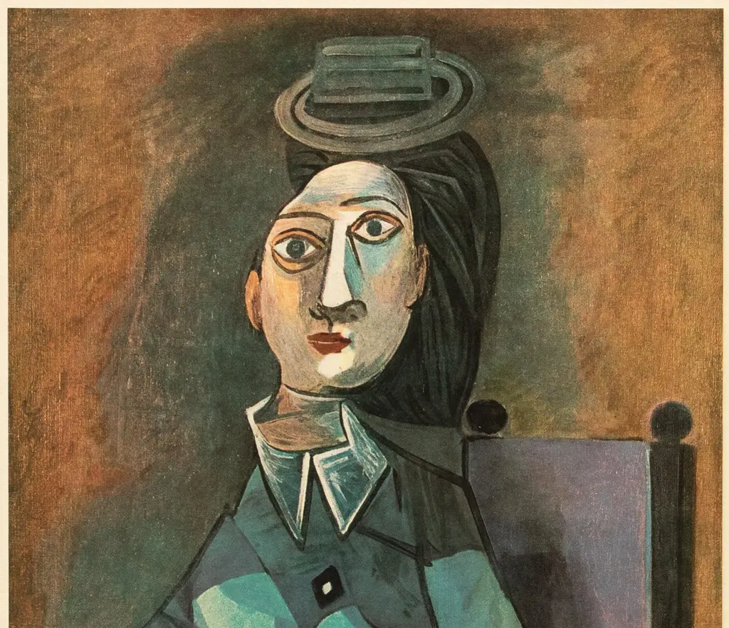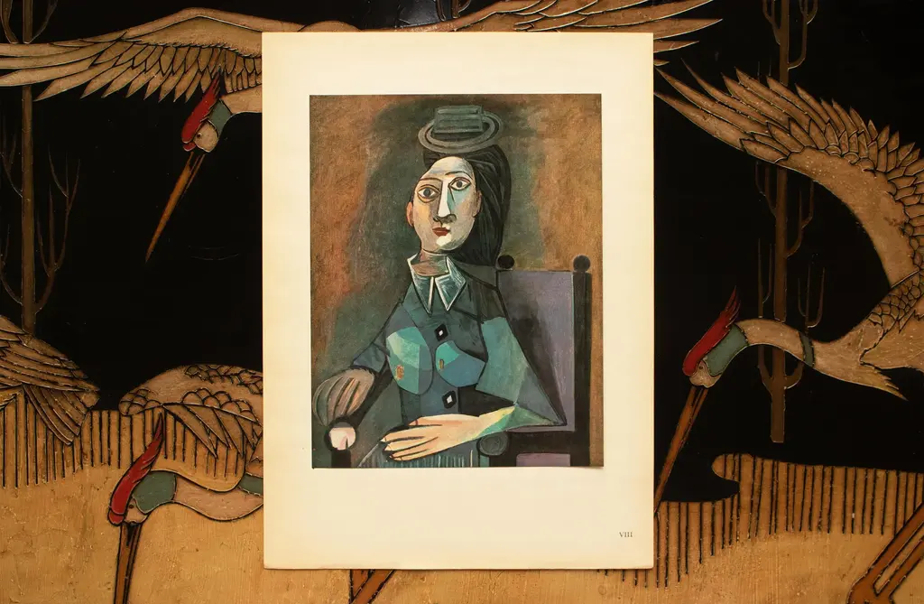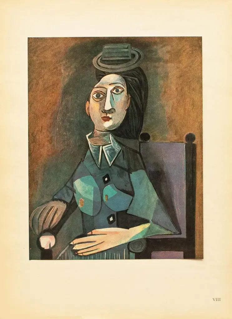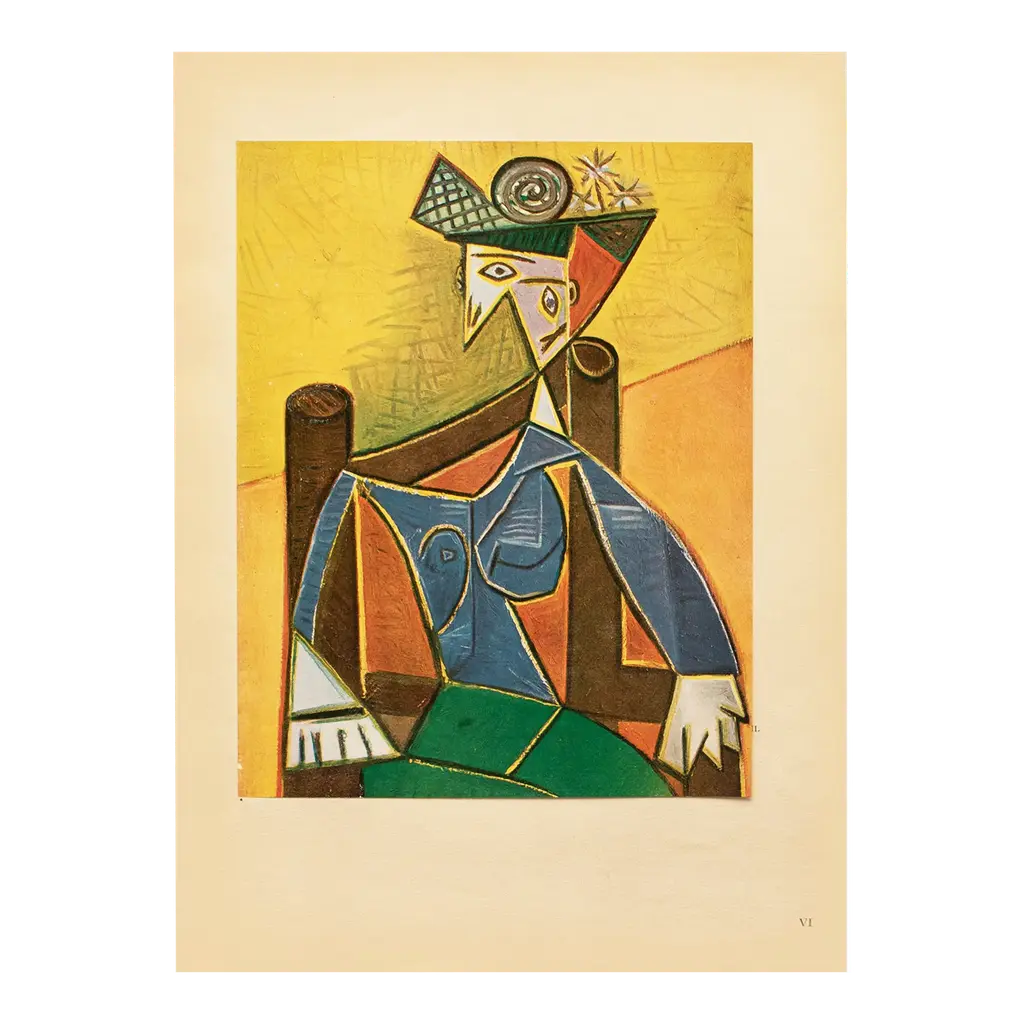 A stunning vintage period offset lithograph, full-color print, after Cubist painting "Portrait" (1942) by Pablo Picasso. Comes from a Second Limited Edition portfolio published by Les Editions Du Chene in Paris, France in 1946. Printed on one side. Hand tipped-in on a board of heavy paper. Numbered on the board: VIII. Excellent condition of the print; the board shows light tanning, minor age and edge wear; never framed. Overall 10.95"W x 14.90"H Image 8.20"W x 10.30"H On the subject of the editor: Editions du Chêne, Paris 1941, it is an occupied Paris which witnesses the emergence, 16, place Vendôme, of the Editions du Chêne. A risky bet given that its 21-year old founder was called Maurice Kahane, an atheist Jewish man who would then adopt the name of his mother, Girodias. The Chêne specialized itself by the edition of art books and literature. The Editions du Chêne would become a branch of the Hachette group in 1951. The edition of art books would then adopt pride of place. George Herscher takes over the Hachette house with enthusiasm in 1971.