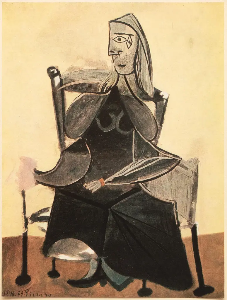 1946 After Pablo Picasso "Seated Woman", Second Edition Period Pairisian Offset Lithograph
