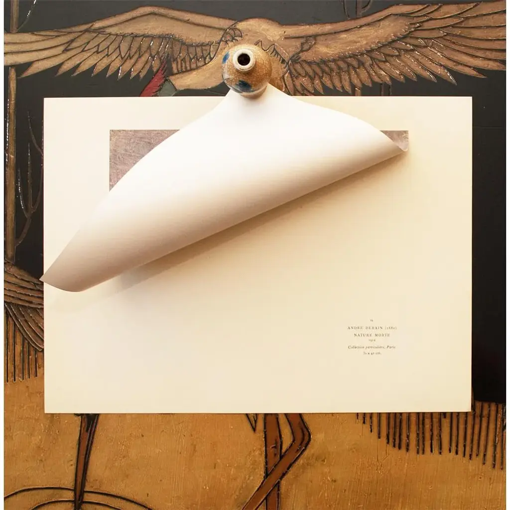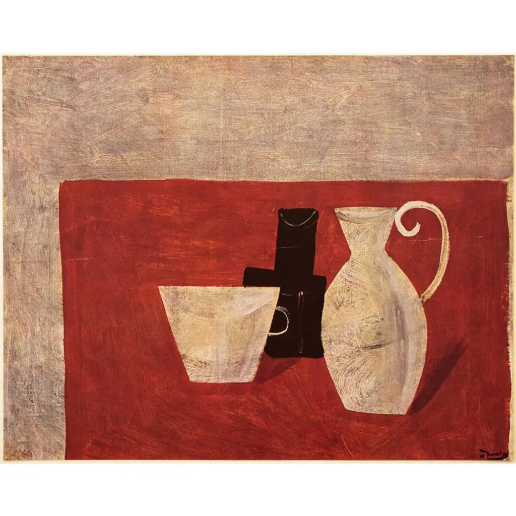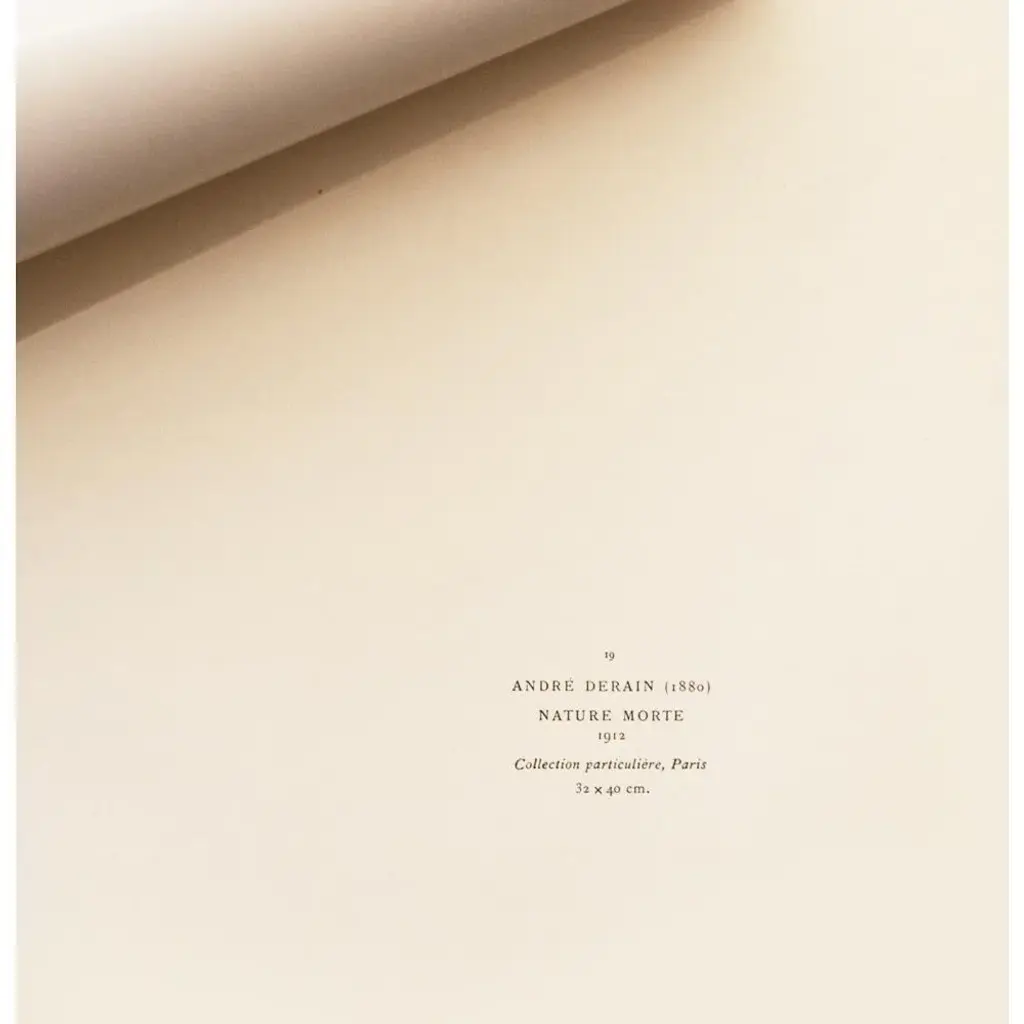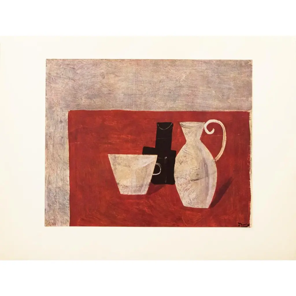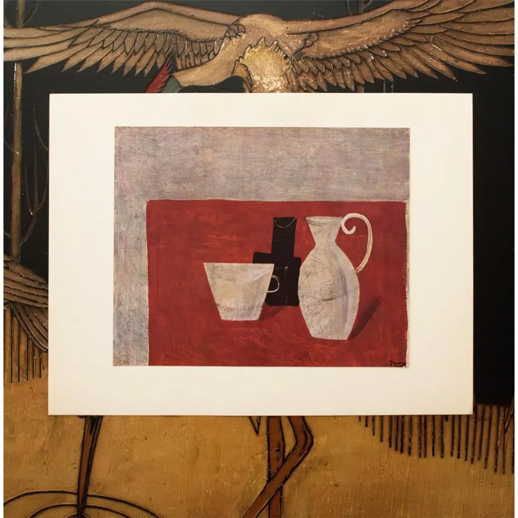 An excellent vintage First Edition period offset lithograph, print of Modernist painting "Nature Morte" (Still Life) by French artist, painter, sculptor Andre Derain (1880-1954). Comes from a rare First Limited Edition art folio published by Albert Skira in Paris, France, in 1947. Printed on one side. Hand tipped-in on a board of heavy paper. Information regarding the original artwork will be found by lifting the piece. Detailed. Deep and rich colors. Excellent condition - minor edge wear on the board, never framed. Overall 15"W x 11"H Image 10.45"W x 8.25"H