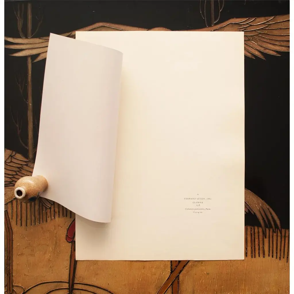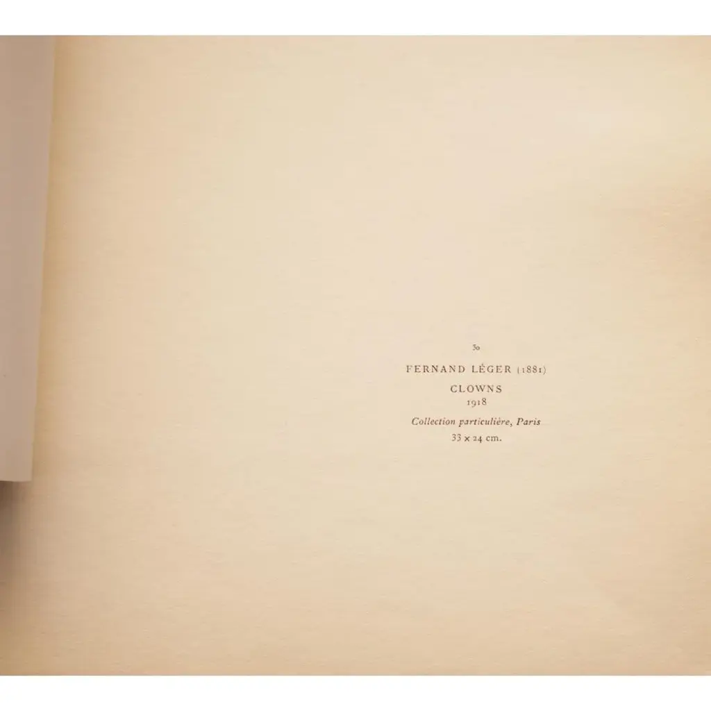 An excellent First Edition period offset lithograph, print, of painting "Clowns" by Joseph Fernand Henri Léger (1881-1955). Signed in the print. Printed on one side. Hand tipped-in on a board of heavy paper. Information regarding the original artwork will be found by lifting the piece. Comes from a rare First Limited Edition art folio published by Albert Skira in Paris, France, in 1947. Excellent condition - minor edge wear on the board, never framed. Overall 11"W x 15"H Image 7.65"W x 10.5"H Joseph Fernand Henri Léger was a French painter, sculptor, and filmmaker. In his early works he created a personal form of cubism which he gradually modified into a more figurative, populist style. His boldly simplified treatment of modern subject matter has caused him to be regarded as a forerunner of pop art.