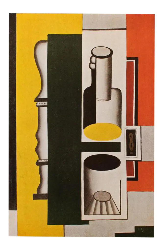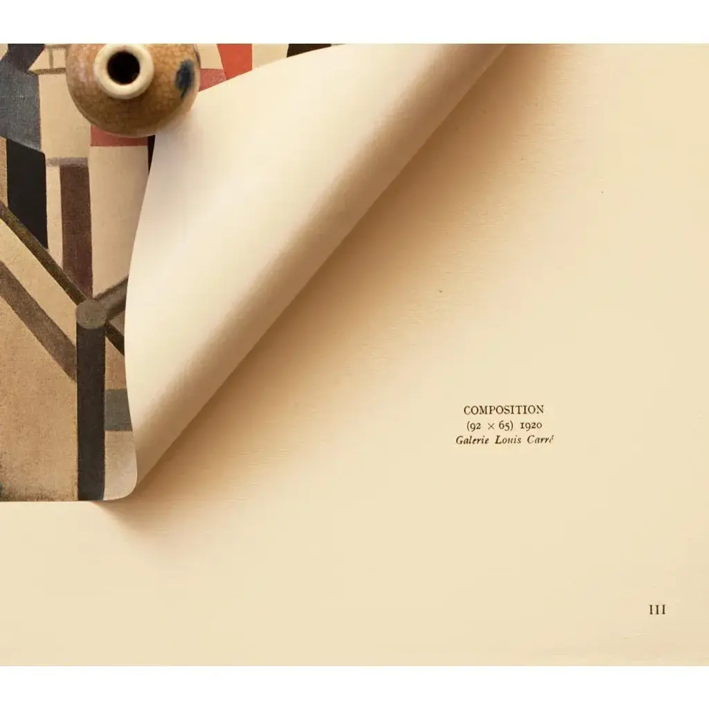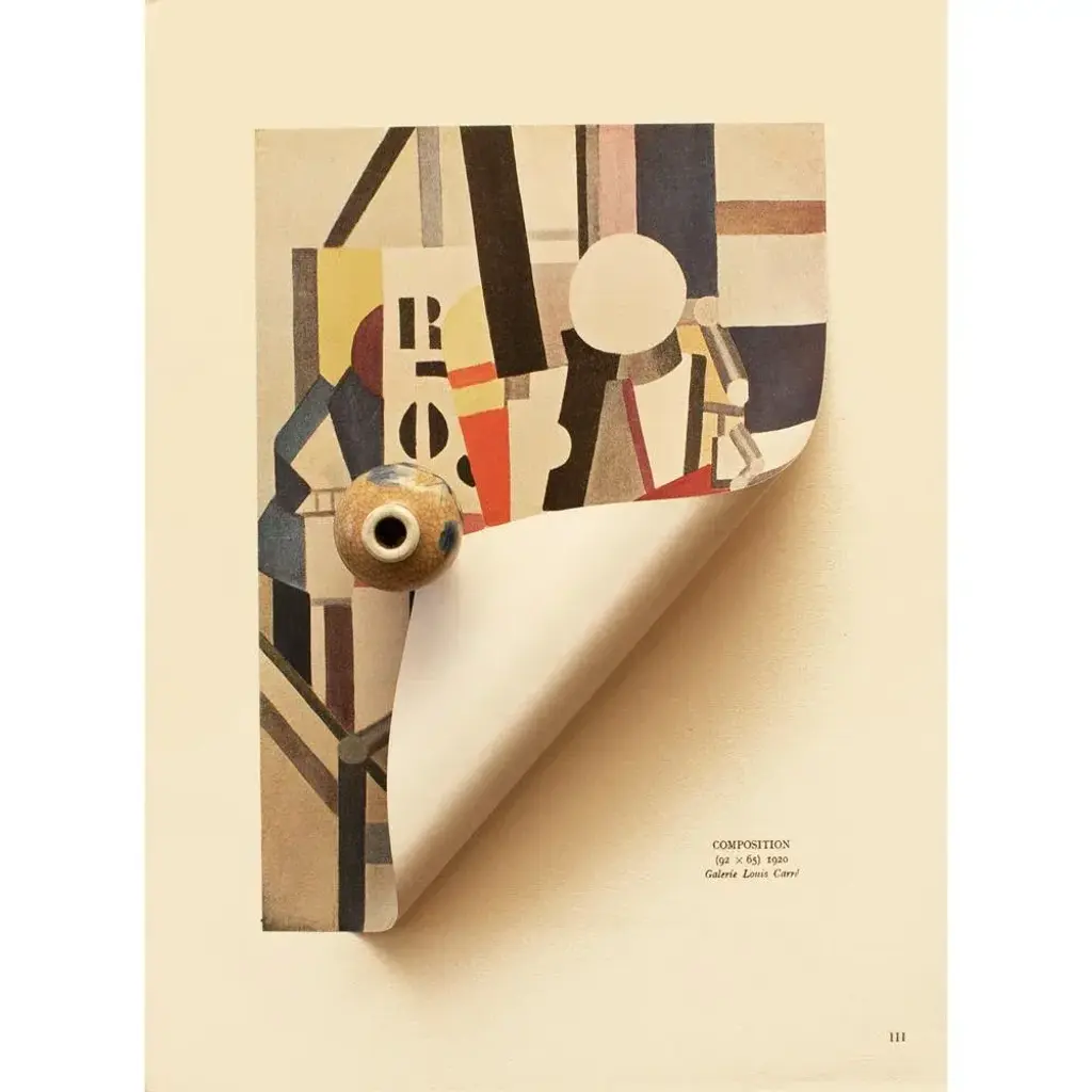 An excellent period offset lithograph, print, of painting Composition (1920) by Fernand Léger. Comes from a First Limited Edition art folio published by Editions Du Chene in Paris, France in 1948. Edition N266. Signed in the print (printed) at the lower right corner: F. Leger. Printed on one side. Hand tipped-in on a board of heavy paper. Information regarding the original artwork will be found by lifting the piece. Numbered "III" in lower right corner. Excellent condition of the print; minor age and edge wear on the board; never framed. Overall 11"W x 15"H Image 7.75"W x 10.75"H