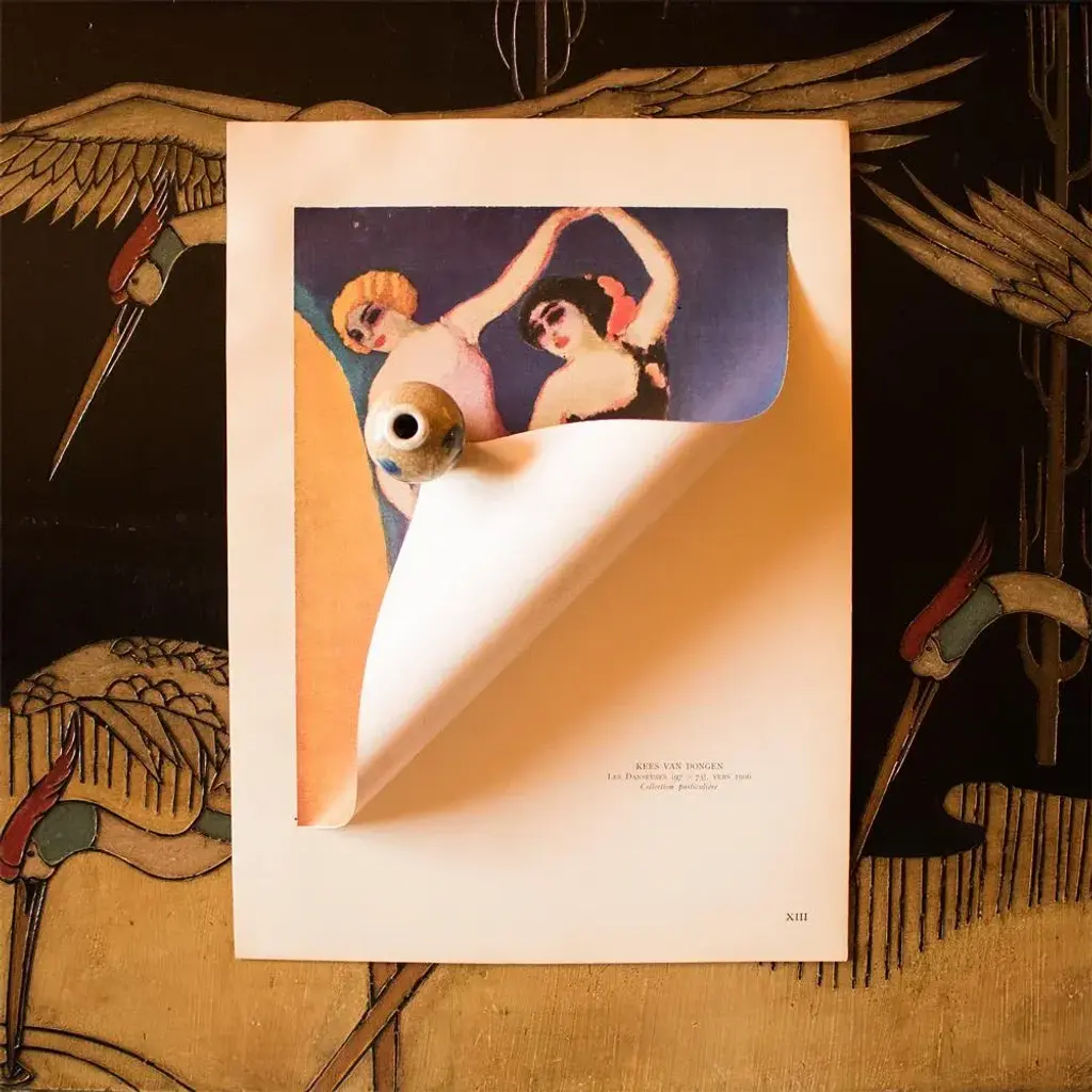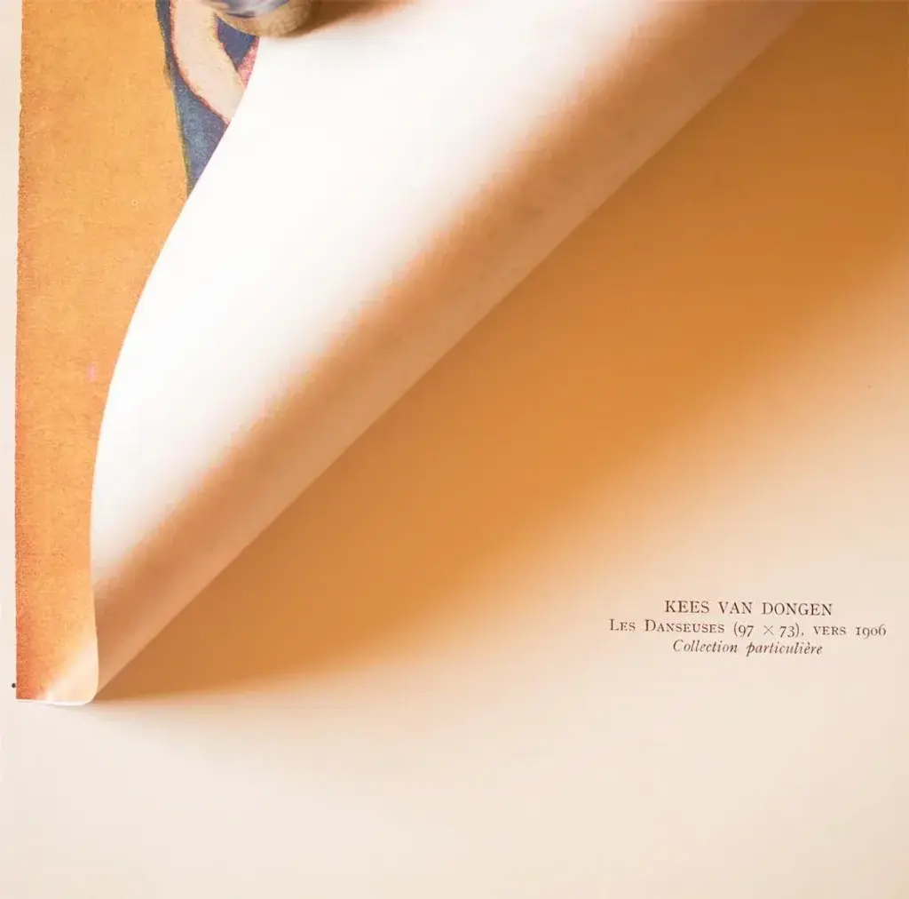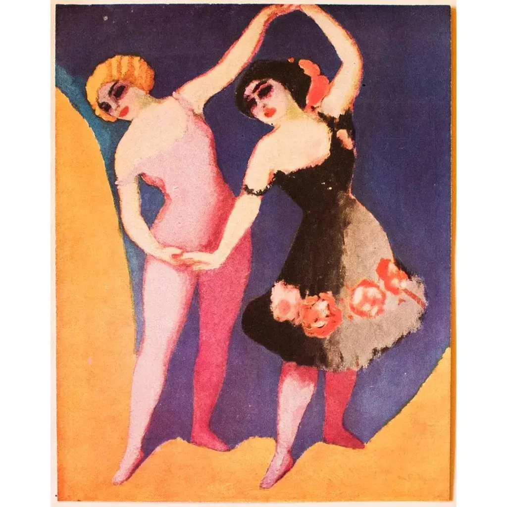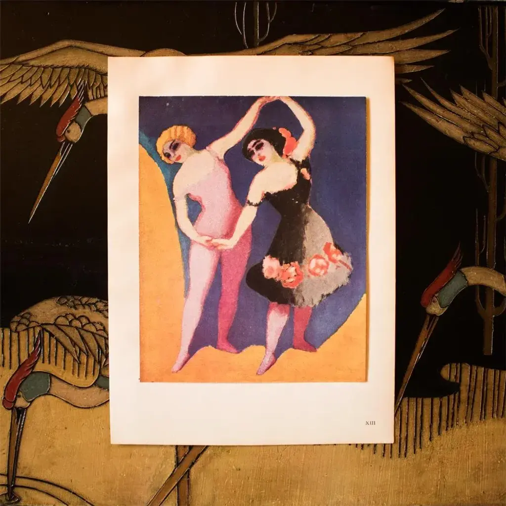 A stunning period offset lithograph, print, of painting "Les Danseuses" (The Dancers, 1906) by Dutch-French painter Kees van Dongen (1877-1968). Printed on one side. Hand tipped-in on a board of heavy paper. Numbered: XIII. Information regarding the original artwork will be found by lifting the piece. Comes from a Second Limited Edition art folio published by Editions du Chene in Paris, France, in 1948. The Edition N223. Excellent condition of the print; minor age and edge wear on the board; never framed. Image 8.7"W x 10.90"H
