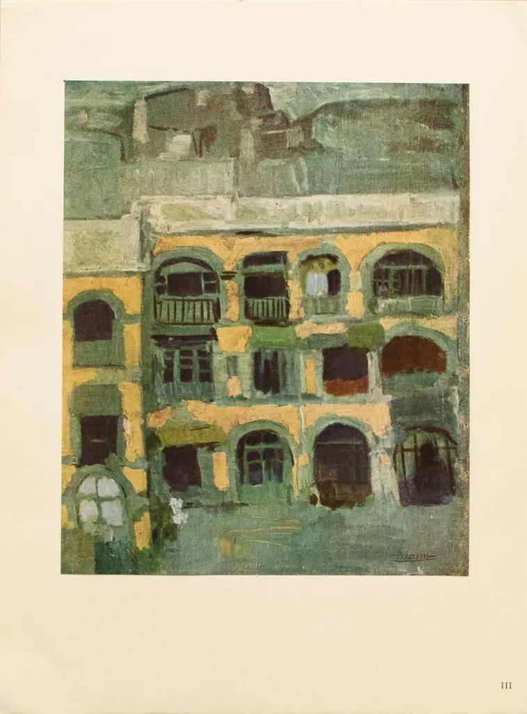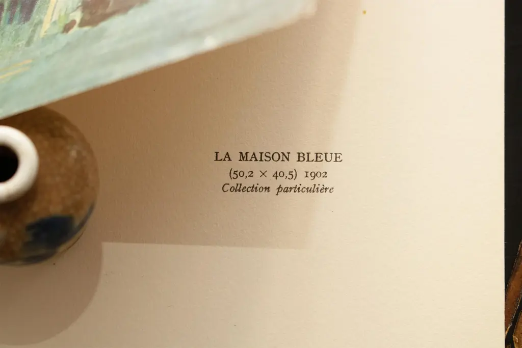 An excellent vintage period offset lithograph, print, after painting La Maison Bleue (The Blue House, 1902) by Pablo Picasso. Comes from a First Limited Edition art folio, published by Les Editions Du Chene in Paris, France in 1948. Edition N269. Printed on one side. Hand tipped-in on a board of heavy paper. Information regarding the original artwork, in French, will be found by lifting the piece. Numbered on the board: III. Excellent condition of the print; minor edge wear on the board; never framed. Overall 10.95"W x 14.90"H Image 8.35"W x 10.30"H On the subject of the editor: Editions du Chêne, Paris 1941, it is an occupied Paris which witnesses the emergence, 16, place Vendôme, of the Editions du Chêne. A risky bet given that its 21-year old founder was called Maurice Kahane, an atheist Jewish man who would then adopt the name of his mother, Girodias. The Chêne specialized itself by the edition of art books and literature. The Editions du Chêne would become a branch of the Hachette group in 1951. The edition of art books would then adopt pride of place. George Herscher takes over the Hachette house with enthusiasm in 1971.