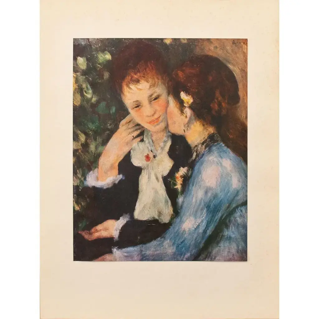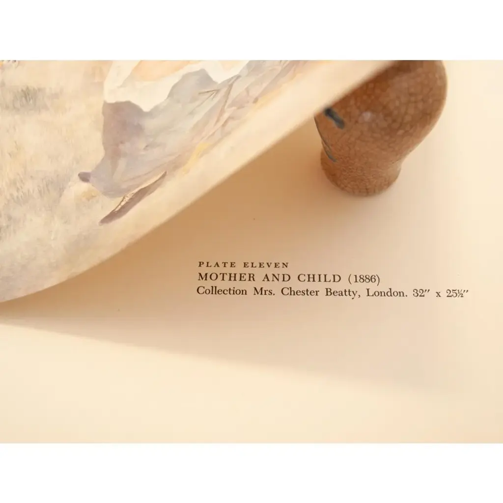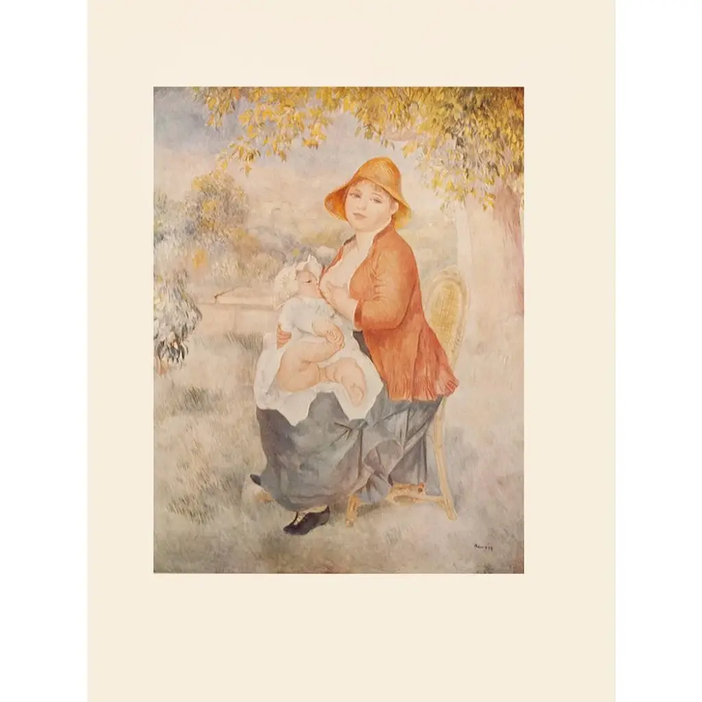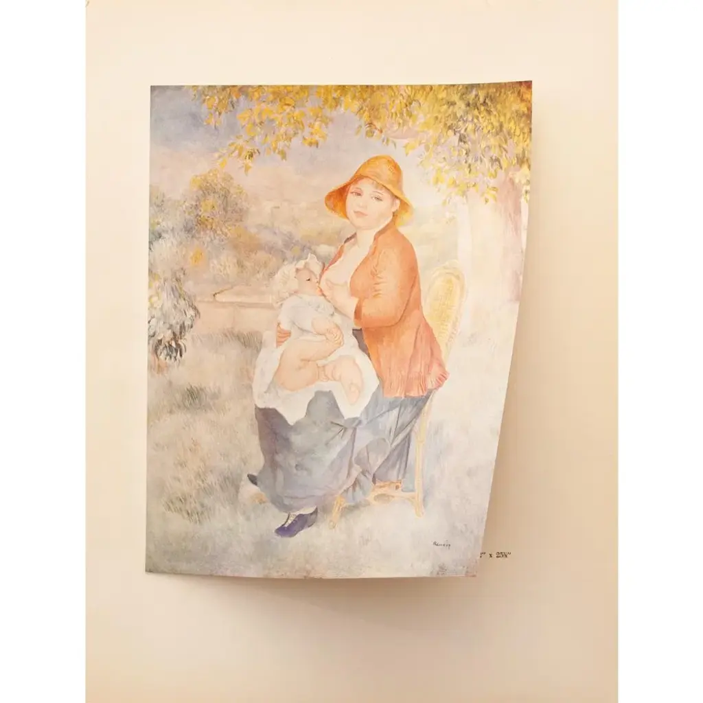 A lovely vintage photogravure after painting "Mother and Child" by Auguste Renoir. Comes from first limited American edition folio published in 1950s. Signed in the print. Printed on one side. Hand tipped-in on a sheet of heavy paper. Information regarding the original artwork will be found by lifting the plate. Excellent condition - minor edge wear, never framed. 11"W x 14.75"H overall 7.8"W x 10.25"H image