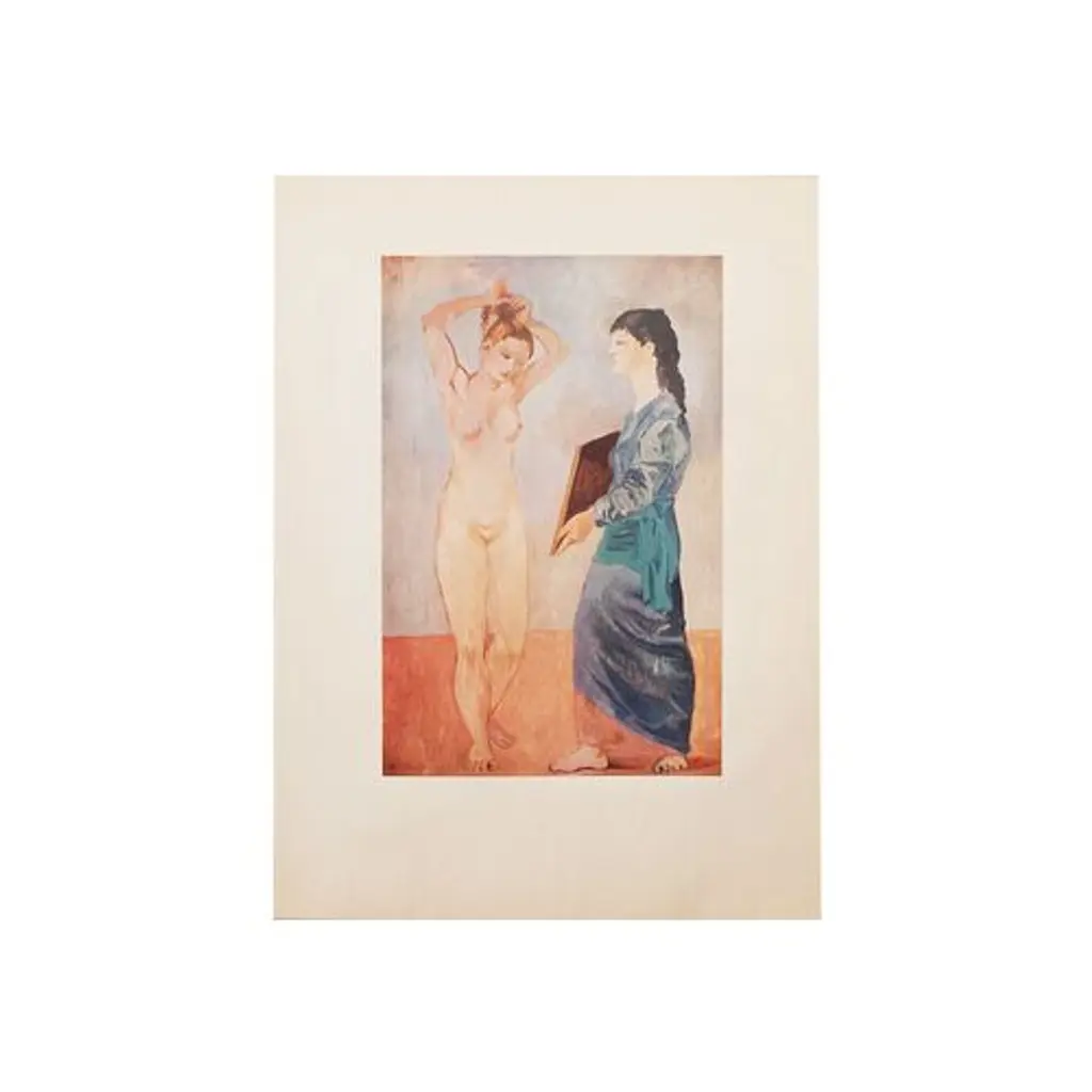 A period First Edition offset lithograph print after the oil painting "La Toilette" (1906) by Pablo Picasso. Comes from a first limited American edition folio published in the mid-1950s. Signed in the print at the top left corner. Printed on one side. Hand tipped-in on a sheet of heavy paper. Information regarding the original artwork will be found by lifting the piece. Excellent condition - never framed. Image: 6.65"L x 10.25"H.