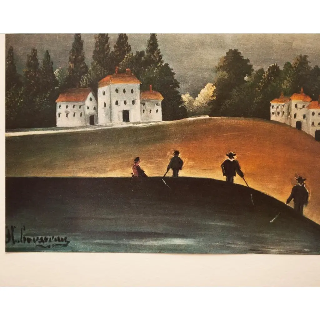1951 After H. Rousseau "Landscape And Four Fishermen" Full-Color Parisian Print