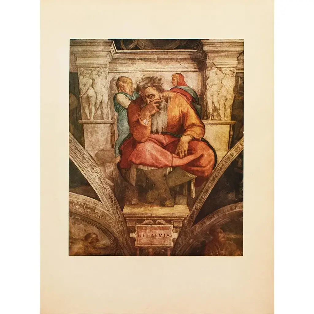 1953 After Michelangelo "The Prophet Jeremiah", Vintage Full-Color Print