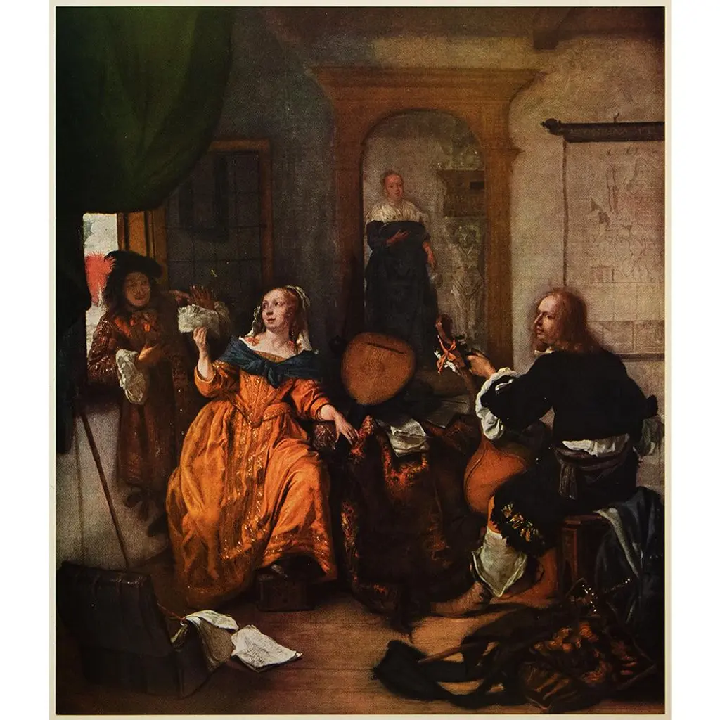 1954 After Gabriel Metsu "The Music Lesson", Vintage Full-Color Print