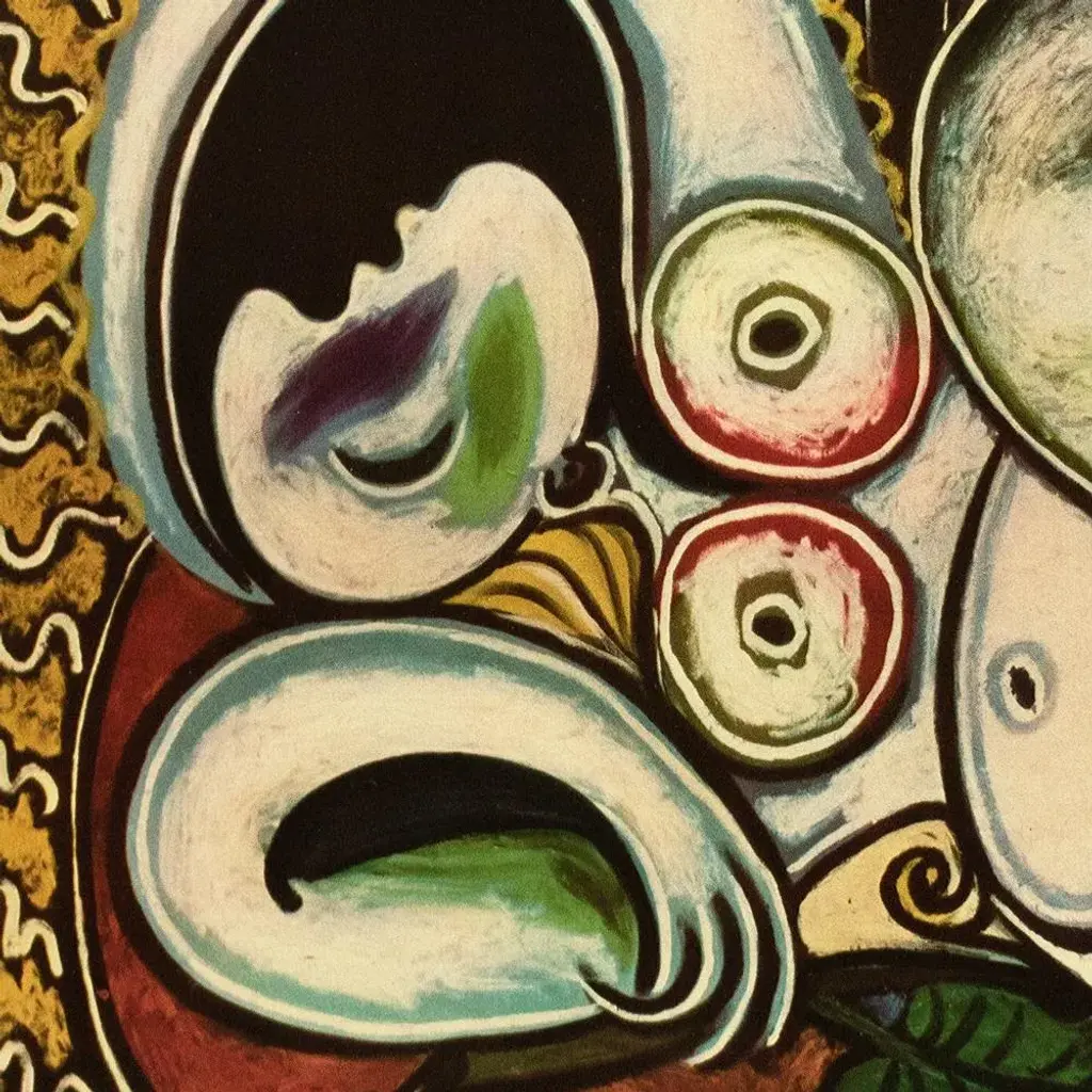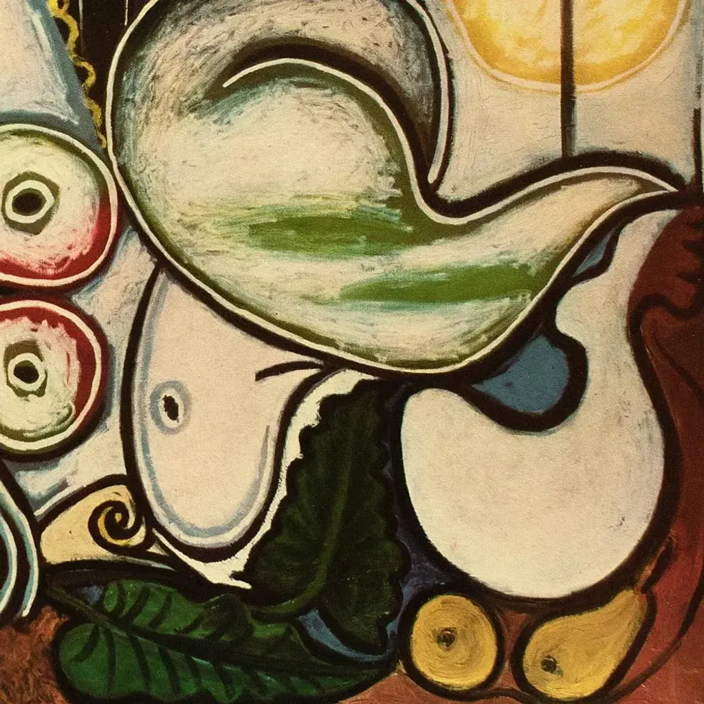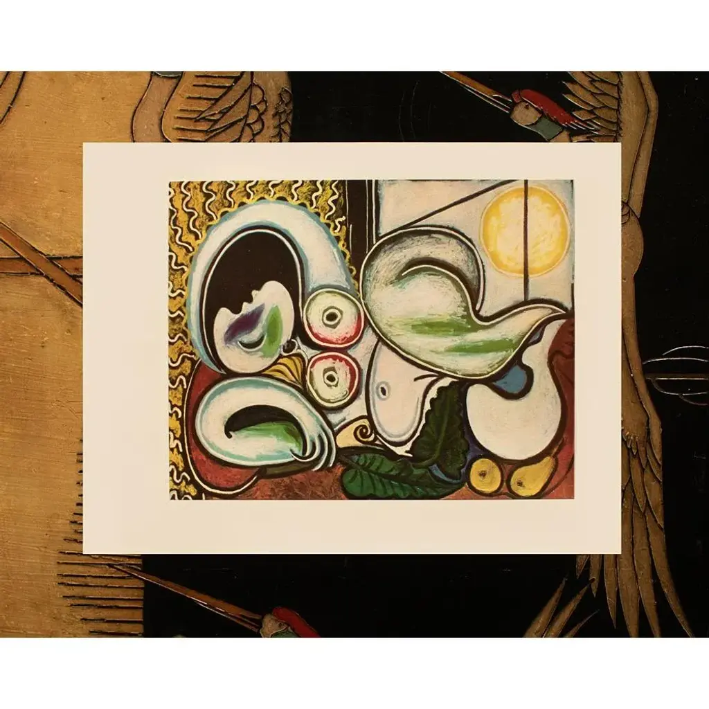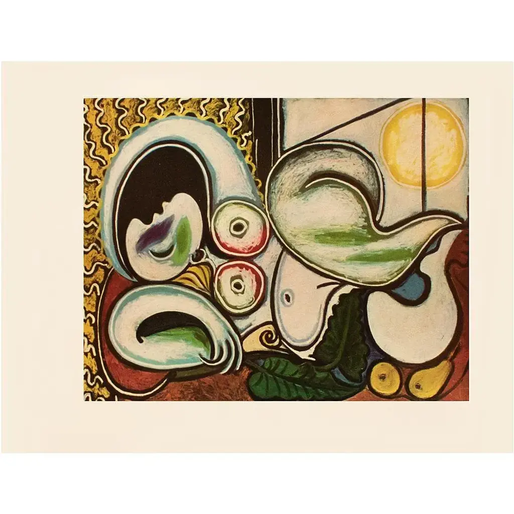 An exquisite striking large vintage First Edition period offset lithograph, print, after painting "Odalisca" (1932) by Pablo Picasso. Comes from a rare First Limited Edition folio published in 1954 in Italy. Printed on one side. Hand tipped-in on a board of heavy paper. Printed name of artwork on the back is related to another piece in the folio. Superb quality. Very detailed. Colors are deep, rich and stunning. Excellent condition - minor edge wear on the board, never framed. You will love texture of the piece. Overall 14.5"W x 11.10"H Image 10.95"W x 8.70"H