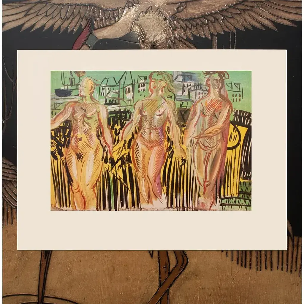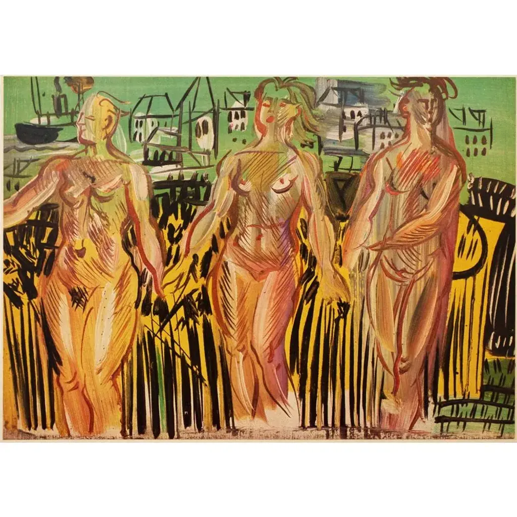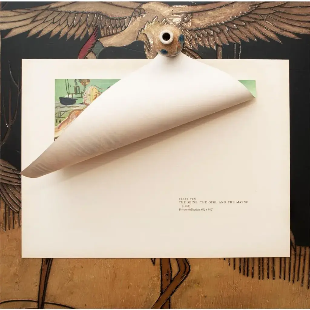 A lovely large vintage First Edition offset lithograph, full-color print, of oil painting "The Siene, The Oise, and The Marne" (1942) by Raoul Dufy. Comes from a First Limited Edition folio published in 1954, the next year after the artist passed away. This makes it a nearly period piece. Printed on one side. Hand tipped-in on a board of heavy paper. Information regarding the original painting will be found by lifting the piece. Excellent condition - minor edge wear on the board, never framed. Overall 14.5"W x 11"H Image 11"W x 7.20"H