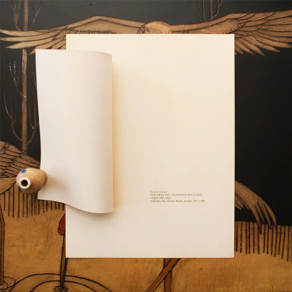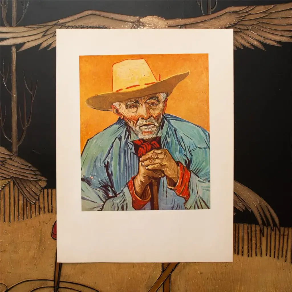 An excellent vintage First Edition full-color print of Post-Impressionist oil painting "Patience Escalier"(1888), also known as "Old Peasant", by Vincent Van Gogh. Comes from a First Limited American Edition folio published in 1954. Printed on one side. Hand tipped-in on a board of heavy paper. Information regarding the original artwork will be found by lifting the piece. Detailed. Vivid and rich colors. Excellent condition - minor edge wear, never framed. Overall 10.90"W x 14.75"H Image 7.95"W x 9.75"H