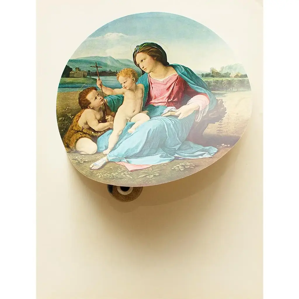 An excellent vintage full-color reproduction print of painting "The Alba Madonna" by Raphael. Comes from a First Edition art folio printed in 1956. Printed on one side. Hand tipped-in on a board of heavy paper. Copy on back of the board is related to another piece in the folio. Excellent condition - some edge wear on the board, never framed. Overall 10.75"W x 14.60"H Image 9.25"W x 9.25"H