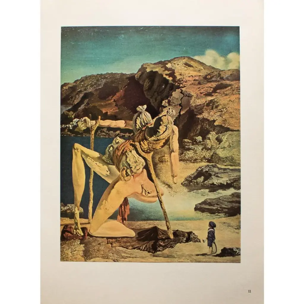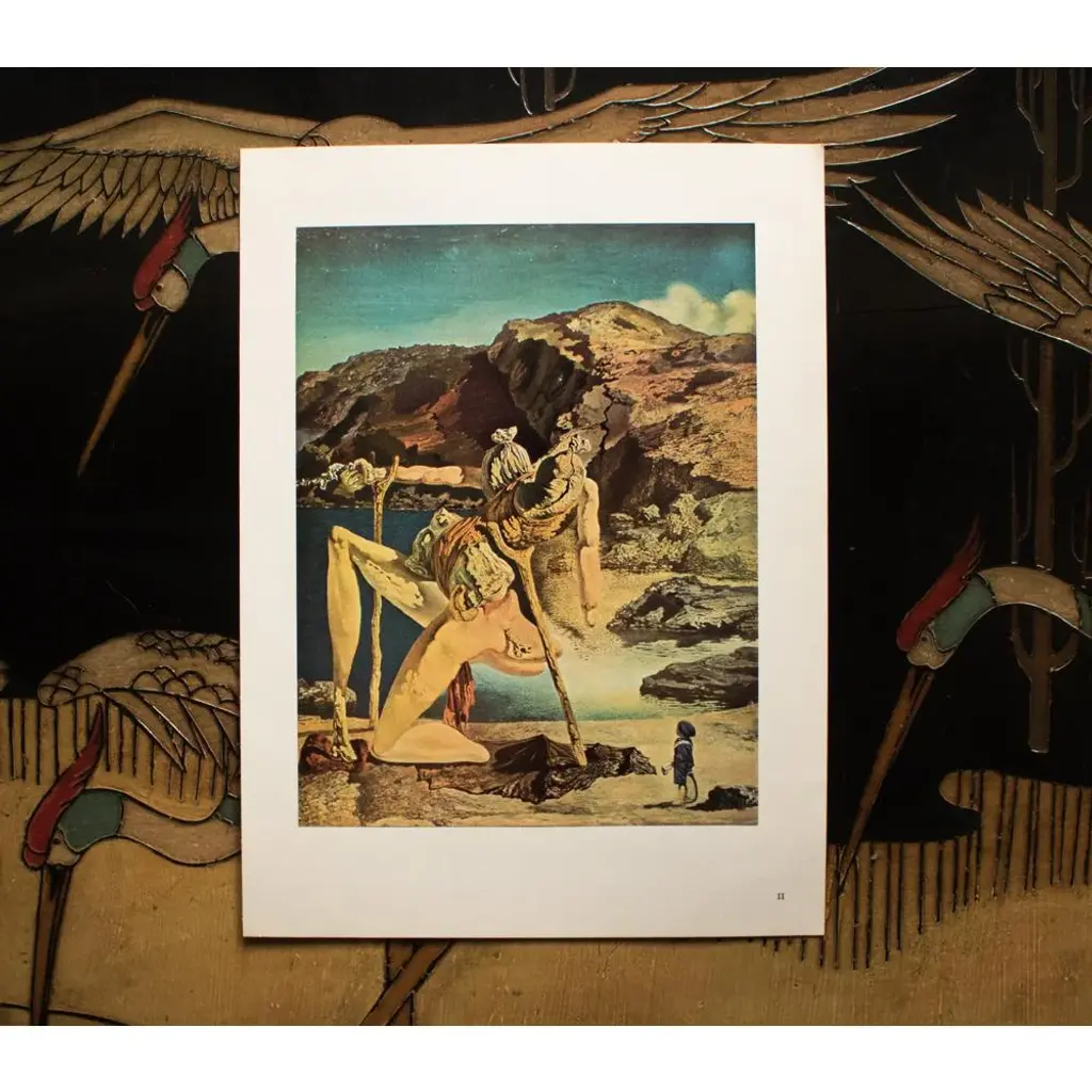 An excellent First Edition period photogravure, full-color print of Surrealist painting "Spectre De La Libido" (1934) by Salvador Dalí from a First limited edition of XVI pieces of Dali's portfolio. Published by by Les Editions Du Chene in Paris, France in 1957. Printed on one side. Hand tipped-in on a board of heavy paper. Numbered on the board. Copy on the back of the board is related to another piece in the folio. Excellent condition - minor edge wear on the board, never framed. Overall 10.75"W x 14.5"H Image 8.5"W x 11"H