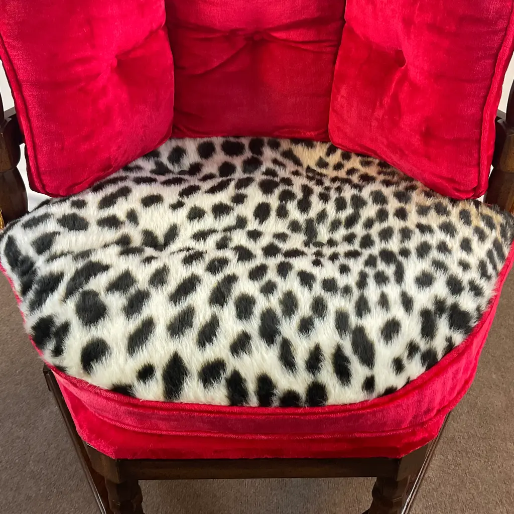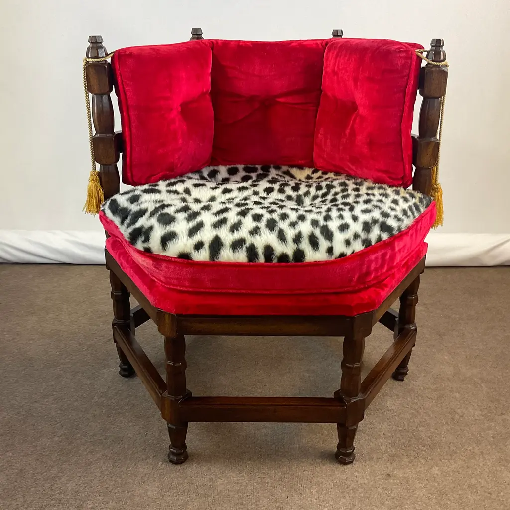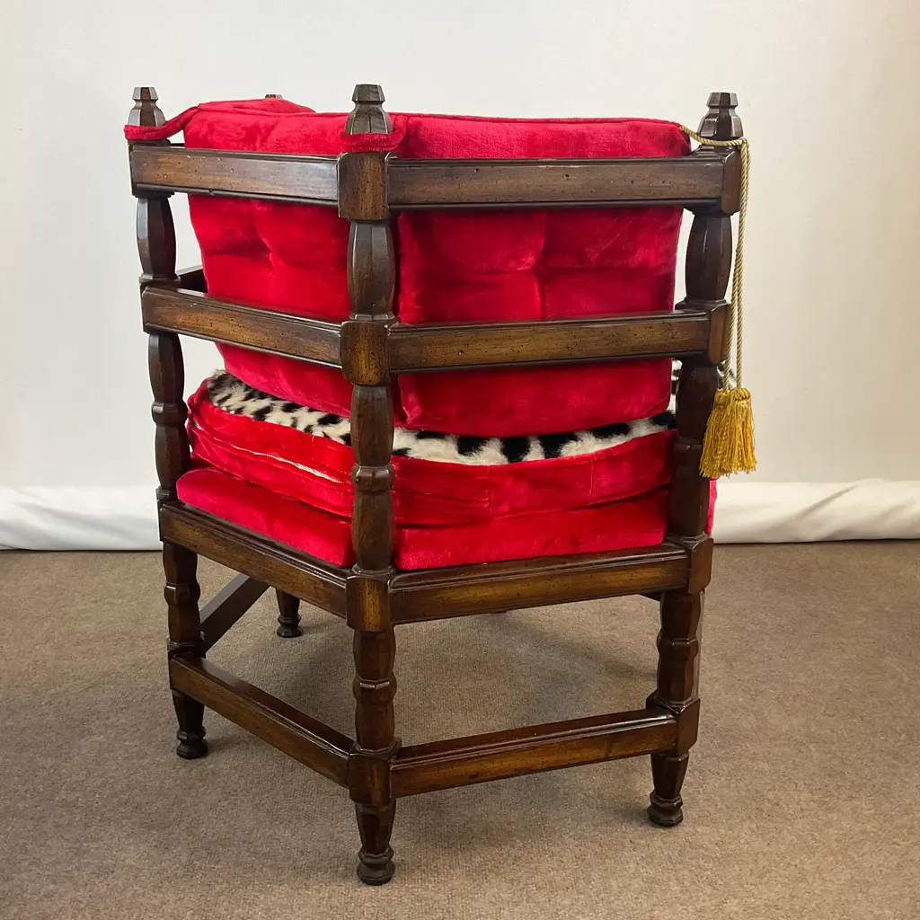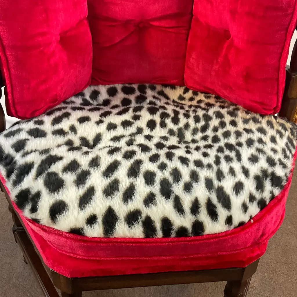 Vintage Home is pleased to present this stunning Hollywood Regency Vintage Side Chair from the 1960s. It was the Golden Era of Hollywood and red velvet, gold tassels and an updated faux cheetah fur fabric was all the rage then and again now. The chair’s history is fun too. Every year in Omaha, NE there is a regional exposition called Aksarben. (It’s Nebraska spelled backwards.) Retailers have booths to showcase their newest wares. A furniture store delivered four of these chairs for the event and then the owners took then home were they were used for many years and curated from their estate sale. The manufacturer was Showpieces by Lewitte out of New York. The Six-Sided chairs were covered in velvet with the color “Tiffany Lipstick”. When we acquired them, we reupholstered one side of the seat cushion because of wear and stains. The faux leopard was a natural option. Everything else is original and it’s stunning. The tag on the underside provides the history. We have 4 of these and can offer a “group” discount. Send an Ask the Seller for details. We have curated a collection of Christmas items from countries near and far. Our CHRISTMAS AROUND THE WORLD collection is a delightful mix of vintage items from many cultures and styles. It’s fun to browse and hopefully you will find something special to add to your holiday. Click on VINTAGE HOME to the left to take you to our front page. You find Holiday items under the Décor – Room Accents & Accessories category and in Tableware – Holiday Tableware. If you purchase more than one item, we COMBINE SHIP whenever possible to save shipping costs. We’ll inform Chairish of the unused shipping labels and they work with UPS on the back end to refund your savings after delivery. Enjoy all of your Holiday Celebrations!