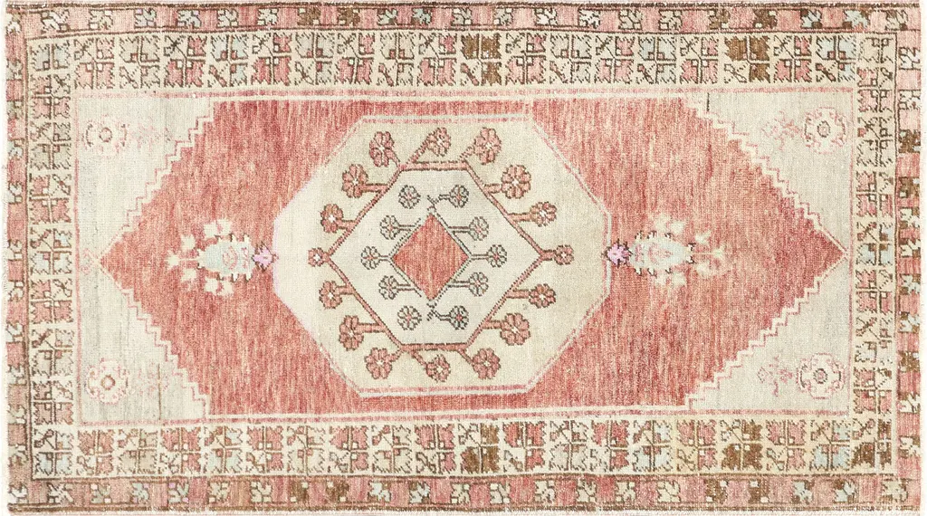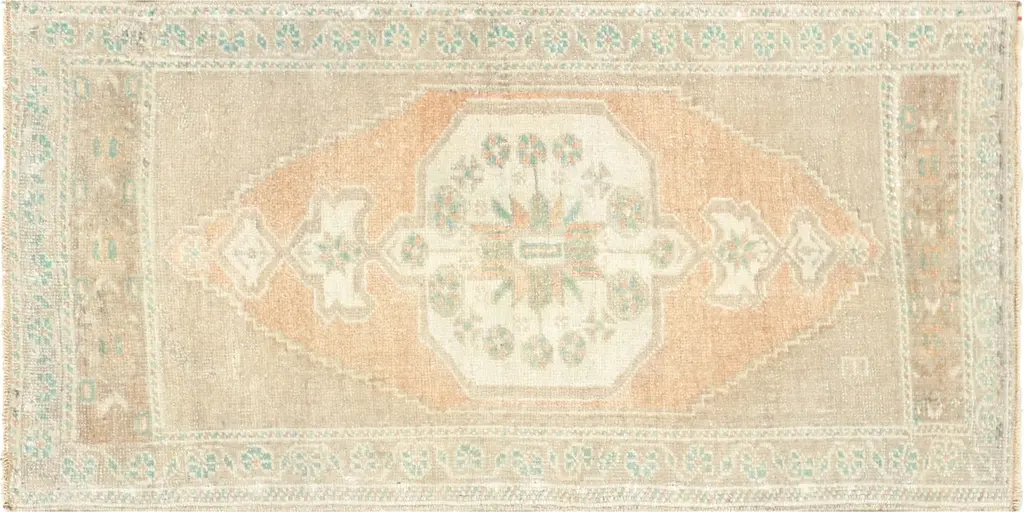 1960s Turkish Oushak Yastic. Hand woven with wool on wool foundation in the Oushak region of Western Turkey. The Anatolian plateau is where the weaving of oriental carpets originated. Rich in tradition and pride, each of the villages of the area produced a certain design and colors that the neighbors rarely copied. These Antiques were largely illustrated in historical European painting. Their bold geometrical designs and soft colors made them favorites of interior designers.