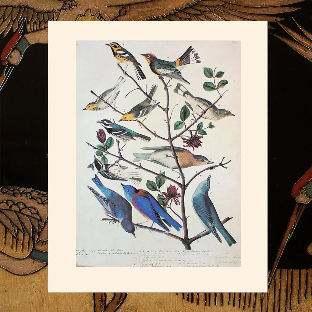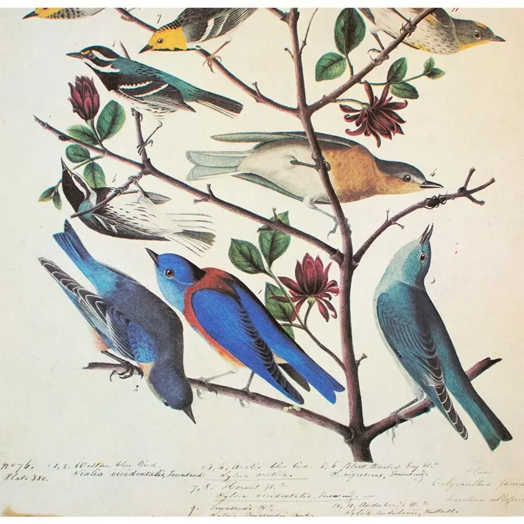 1966 American Bluebirds And Townsend's Warbler After Audubon, Cottage Print