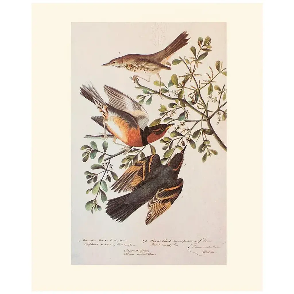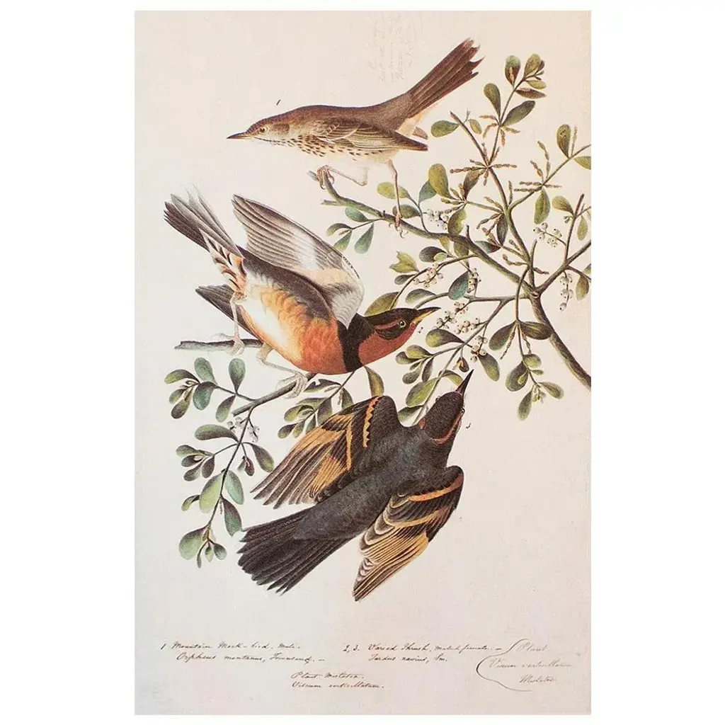 1966 Cottage Print "Mountain Mockingbird, Sage Thrasher & Varied Thrush" After John James Audubon