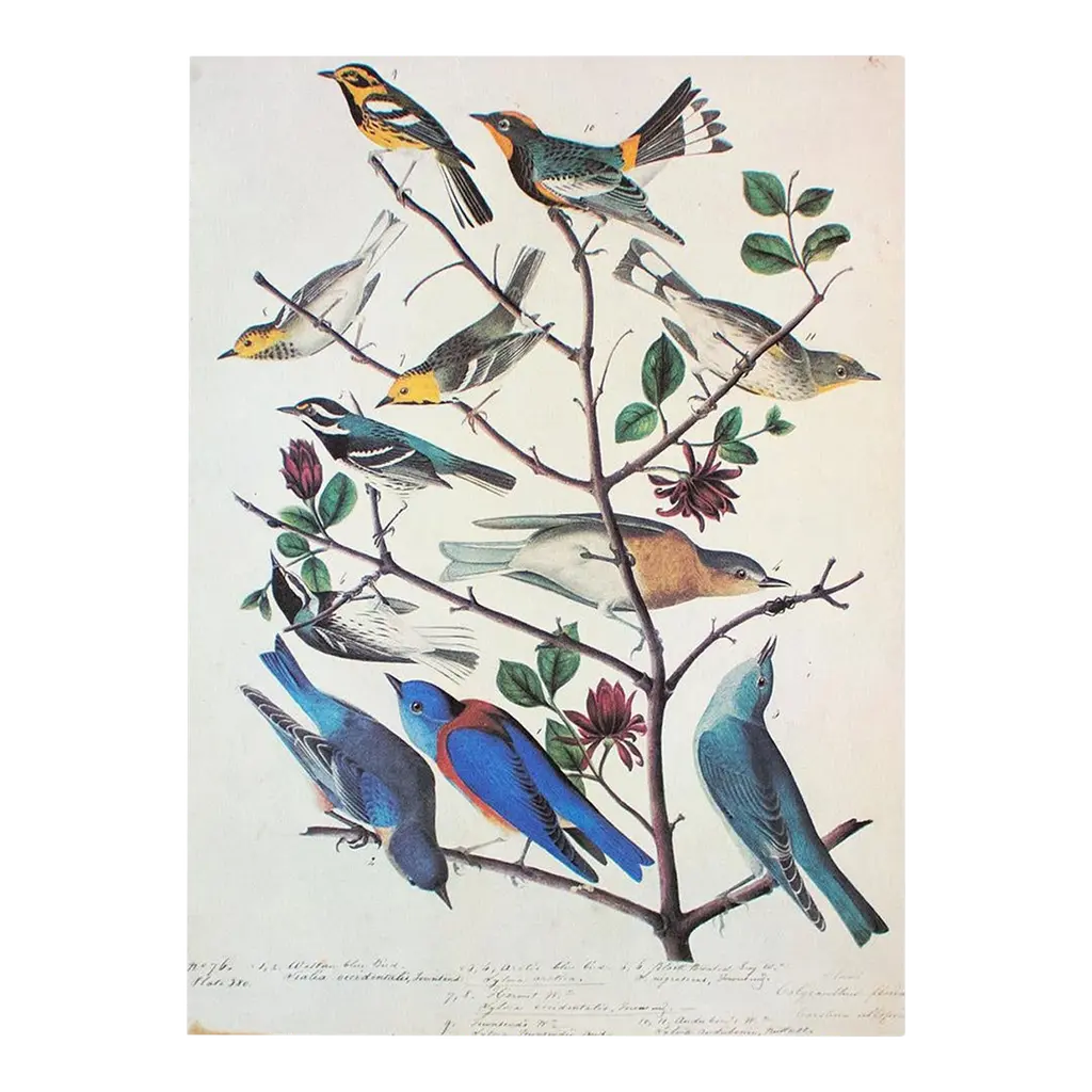 A stunning vintage English Tradition, American Classical, Farmhouse or Cottage Style reproduction of the original lithographic print of Sage Thrasher, Mountain Mockingbird, and Varied Thrush After John James Audubon. Comes from The Birds of America book by Audubon, published in the U.S. in 1966. Signed in the print. Very detailed. Colors are neutral. Excellent condition - never framed.