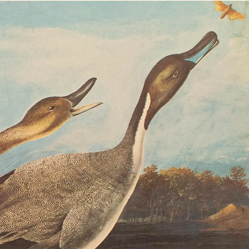 1966 Pin-Tail Ducks And Butterfly After Audubon, Xl Cottage Print
