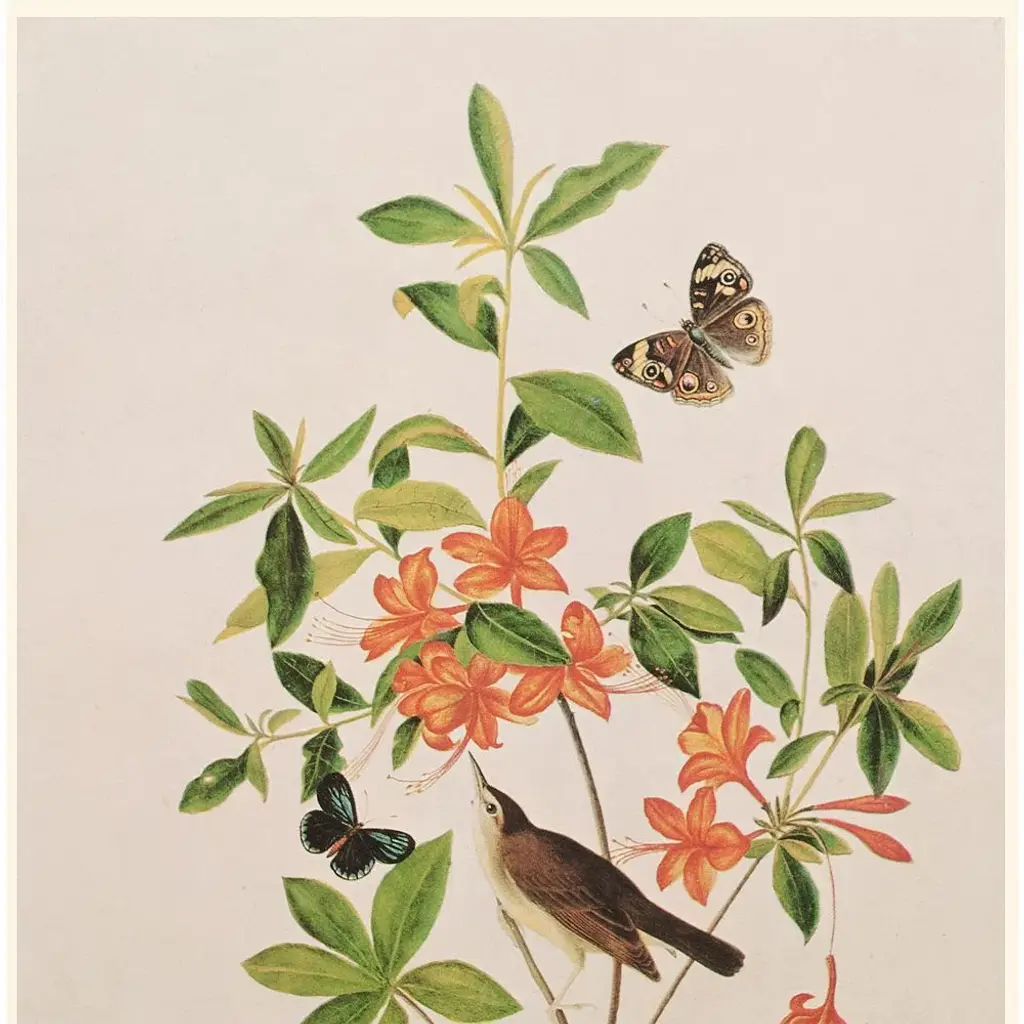 A stunning vintage American Classical, Traditional, Farmhouse, Chinoiserie or Cottage Style reproduction of the original lithographic print of Swainson's Warbler After John James Audubon. Comes from The Birds of America book by Audubon, published in 1966. Signed in the print. Very detailed. Excellent condition - never framed.
