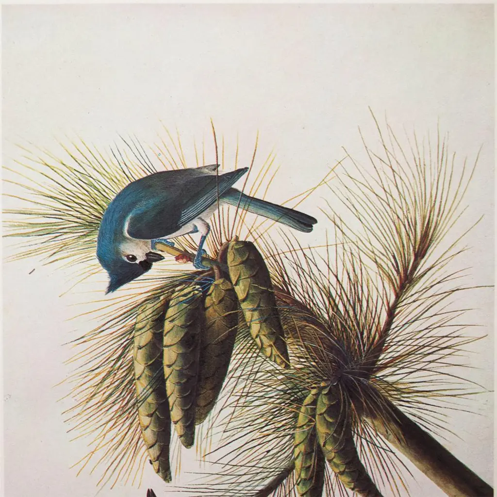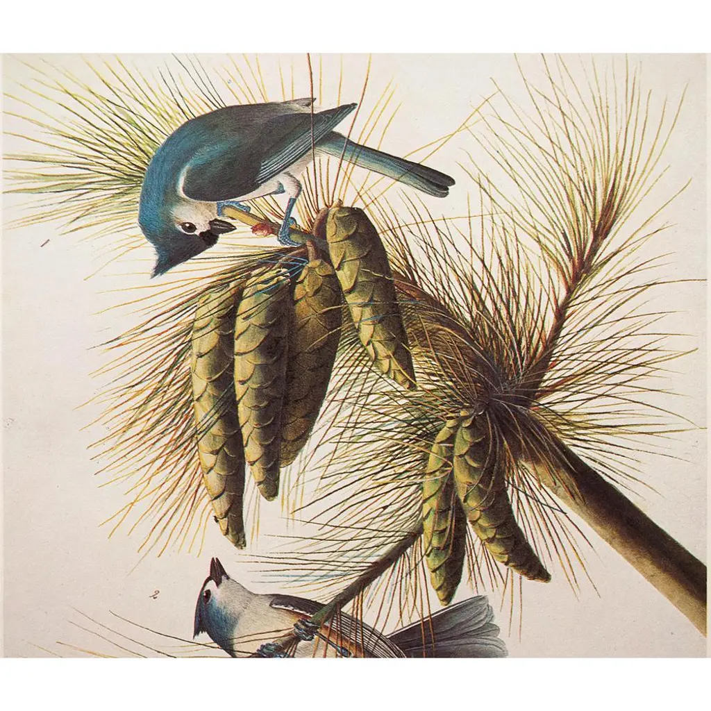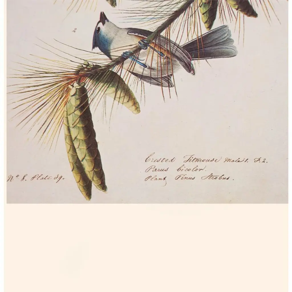 A stunning vintage American Classical, Traditional, Rustic, Farmhouse, Cottage or Chinoiserie Style reproduction of the original lithographic print of Tufted or Crested Titmouse After John James Audubon. Comes from The Birds of America book by Audubon, published in the U.S. in 1966. Signed in the print. Very detailed. Excellent condition - minor edge wear, never framed. Overall 10.25"W x 13.25"H Image 6.25"W x 10"10"H