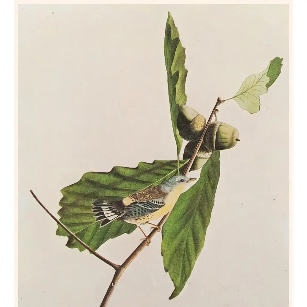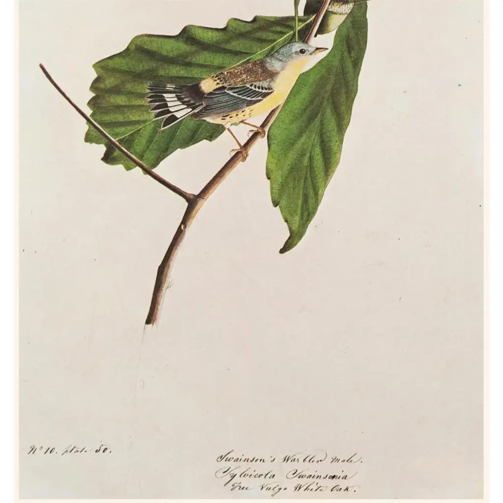 1966 Vintage American Classical Print "Swainson's Warbler & White Oak" After John James Audubon