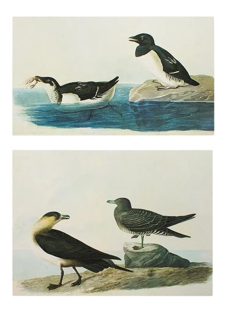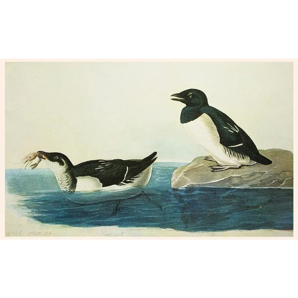 1966 Vintage Cottage Print After John James Audubon, "Dovekie And Richardson's Jager"