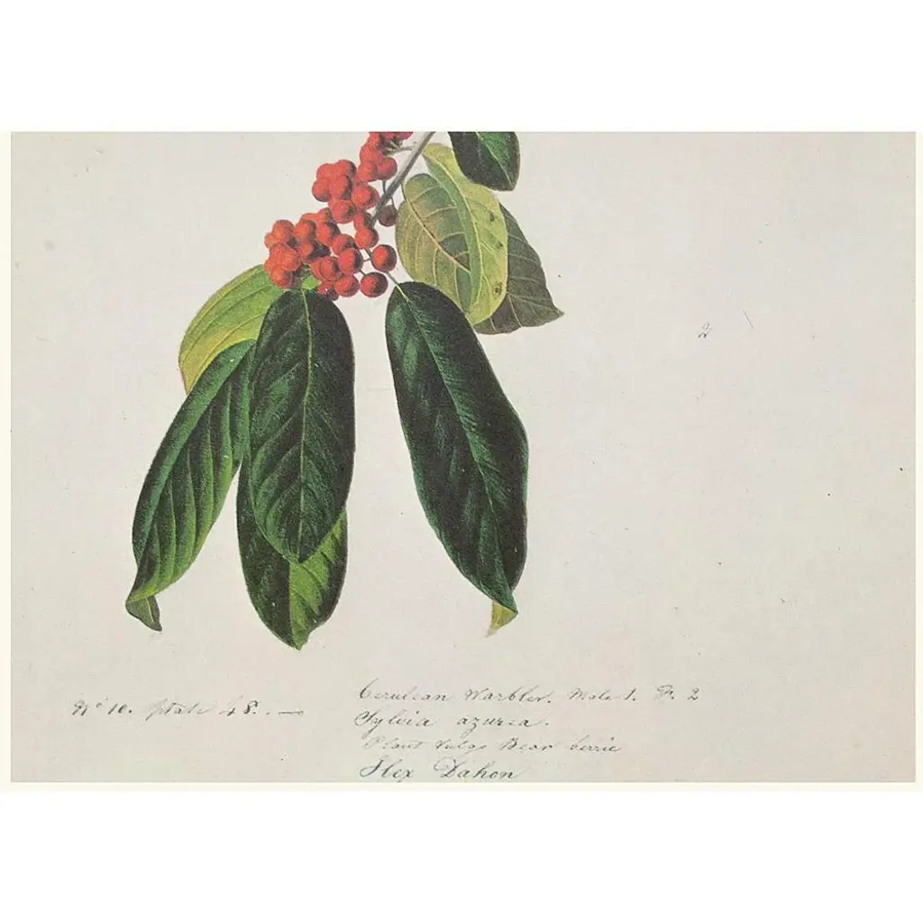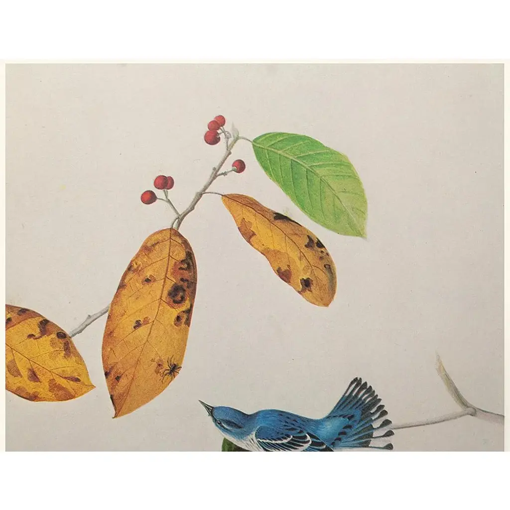 1966 Vintage Cottage Print "Azure Warbler & Berries" After John James Audubon