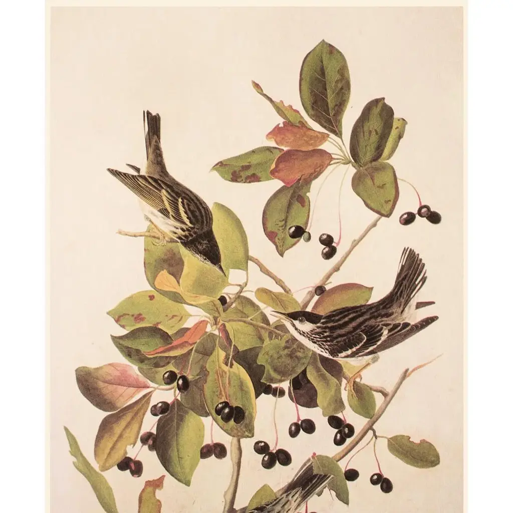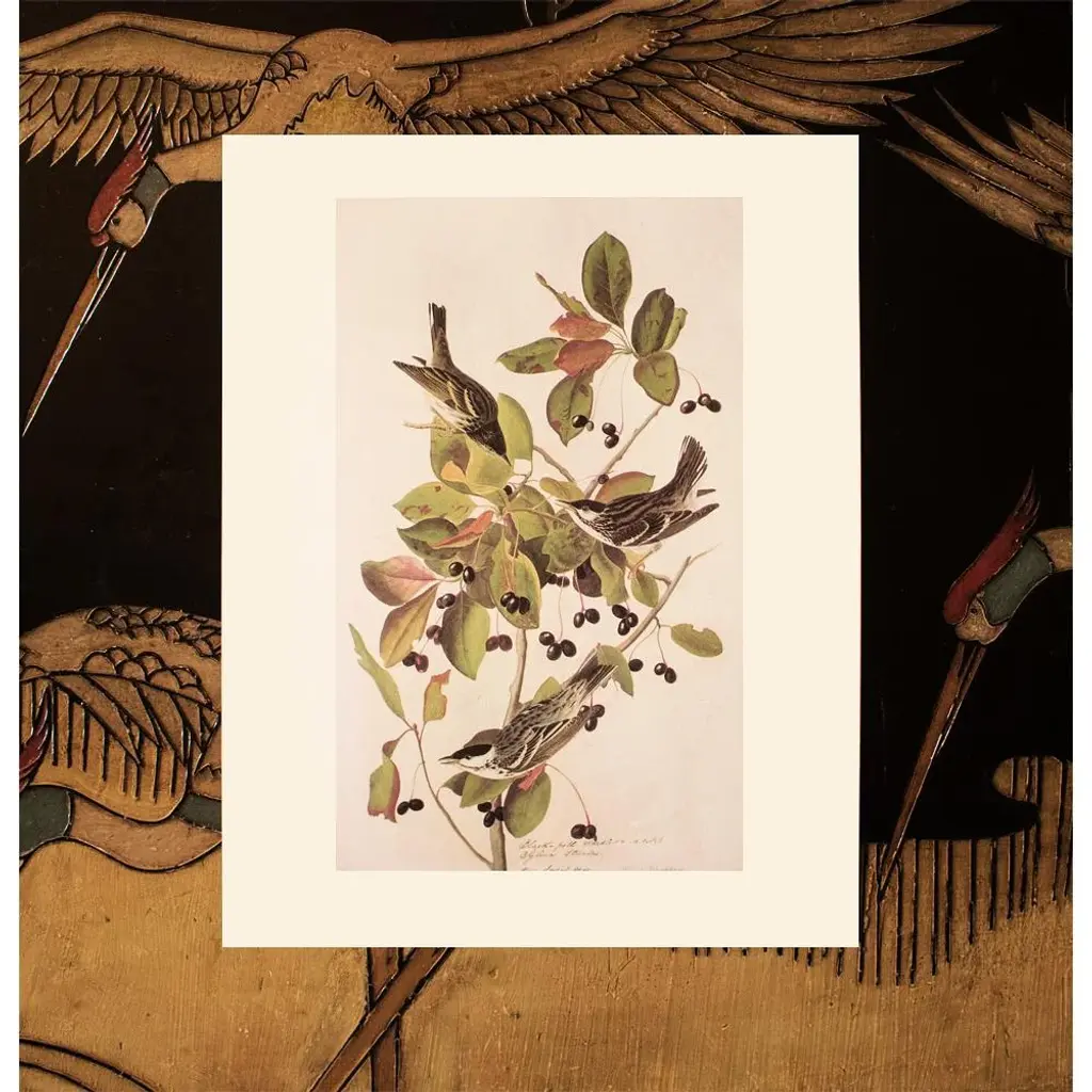 1966 Vintage Cottage Print "Black-Poll Warbler" After John James Audubon