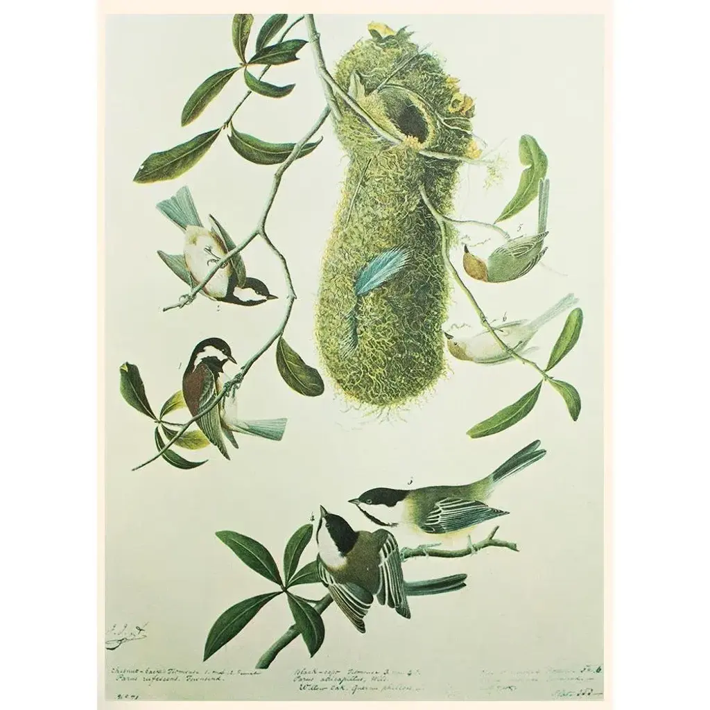1966 Vintage Cottage Print "Chestnut-Backed Titmouse" After John James Audubon