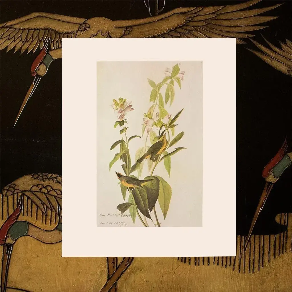 1966 Vintage Cottage Print "Flycatcher & Warbler" After John James Audubon