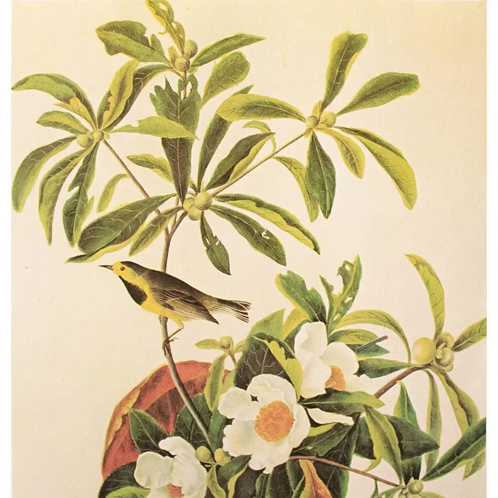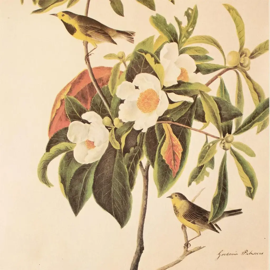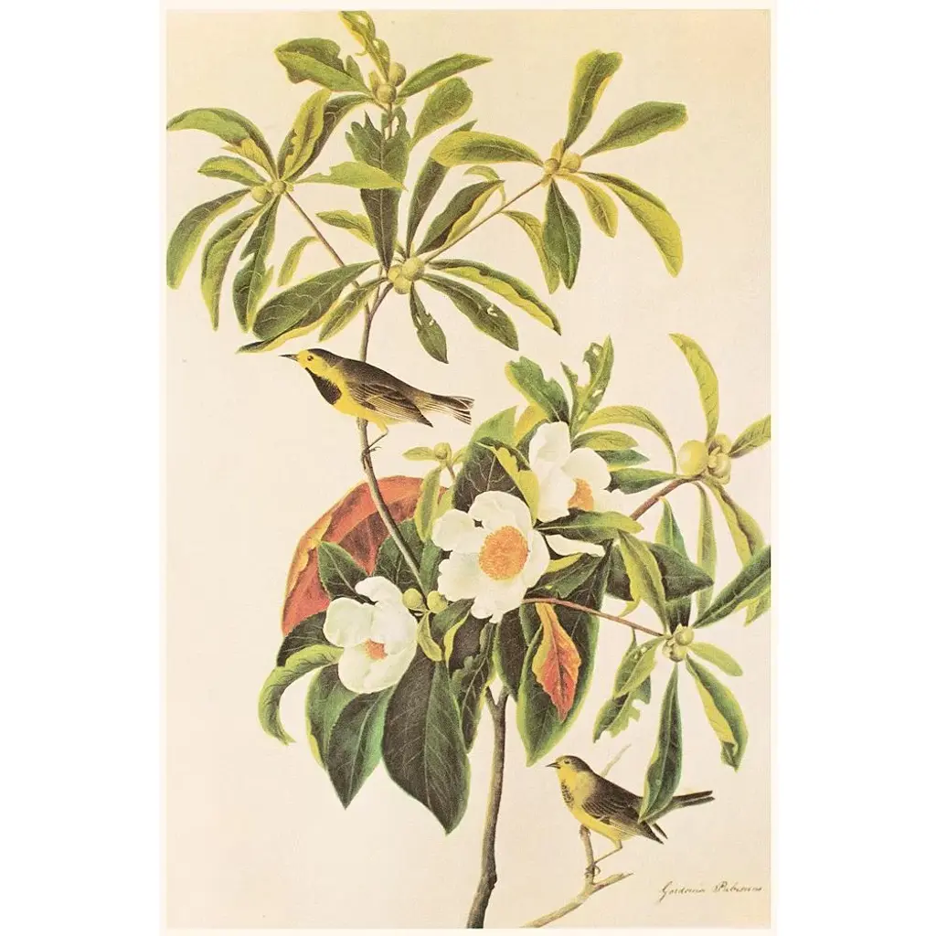 1966 Vintage Cottage Print "Gardenia & Bachman's Warbler" After John James Audubon