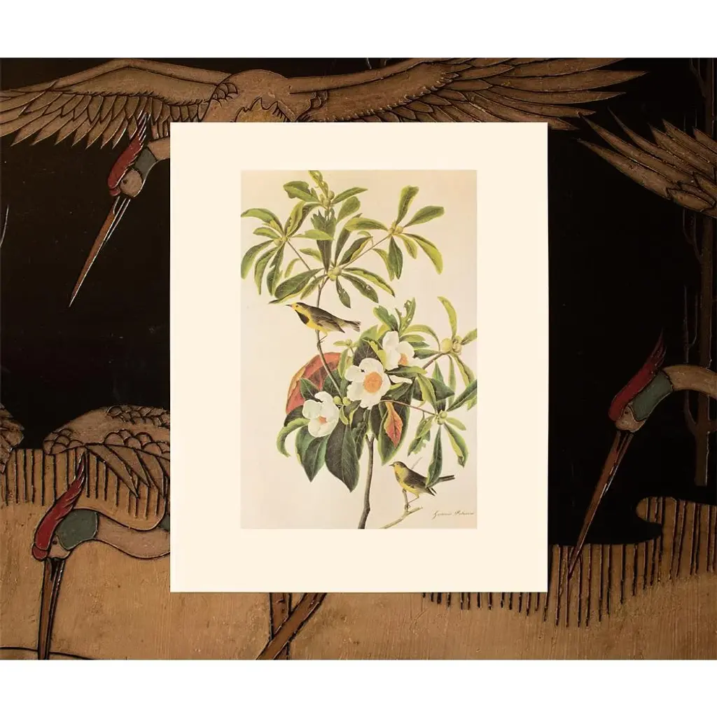 A stunning large vintageAmerican Classical, Farmhouse, Traditional or Cottage Style reproduction of the original lithographic print of Bachman's Warbler and Gardenia After John James Audubon. Comes from The Birds of America book by Audubon, published in 1966. Signed in the print. Very detailed. Excellent condition - never framed. Overall: 10.25"W x 13.25"H
