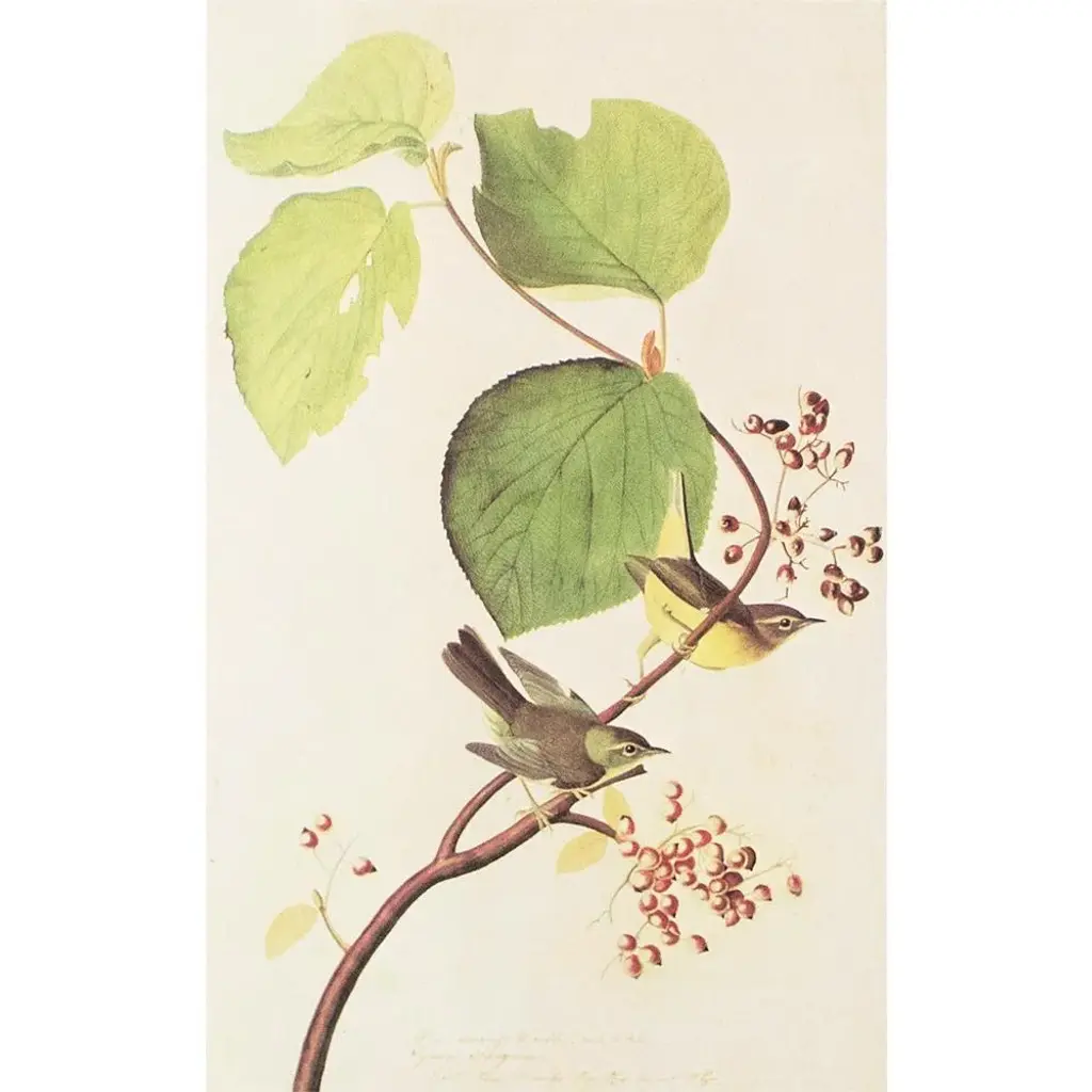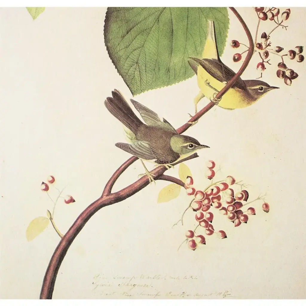 A lovely vintage American Classical, Traditional, Cottage or Farmhouse Style reproduction of the original lithographic print of Pine Swamp Warbler after John James Audubon. Comes from The Birds of America book by Audubon, published in 1966. Signed in the print. Very detailed. Excellent condition - never framed. Overall: 10.25"W x 13.25"H