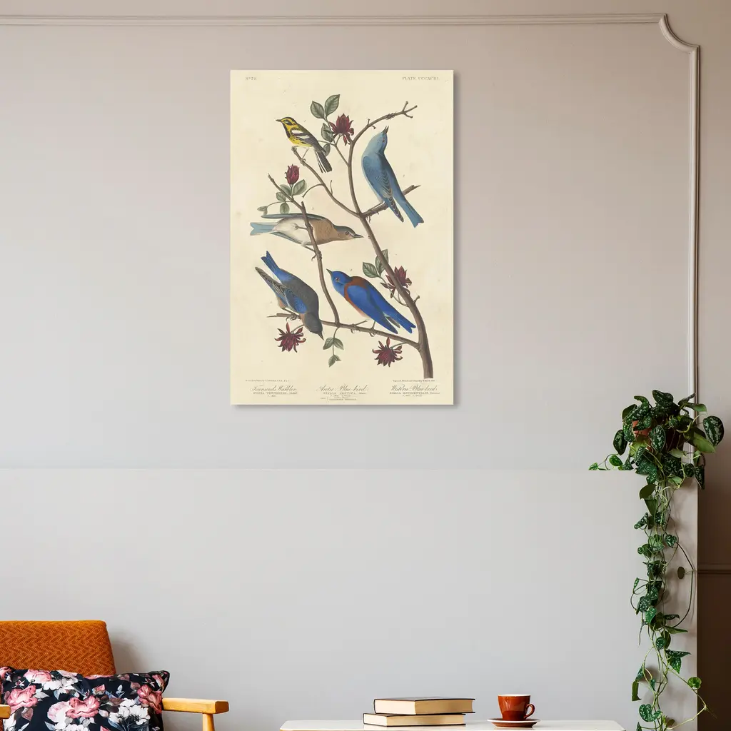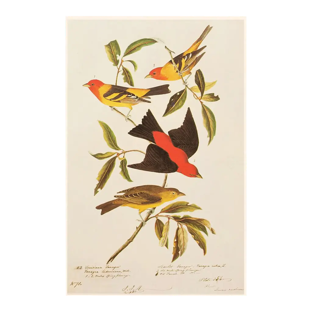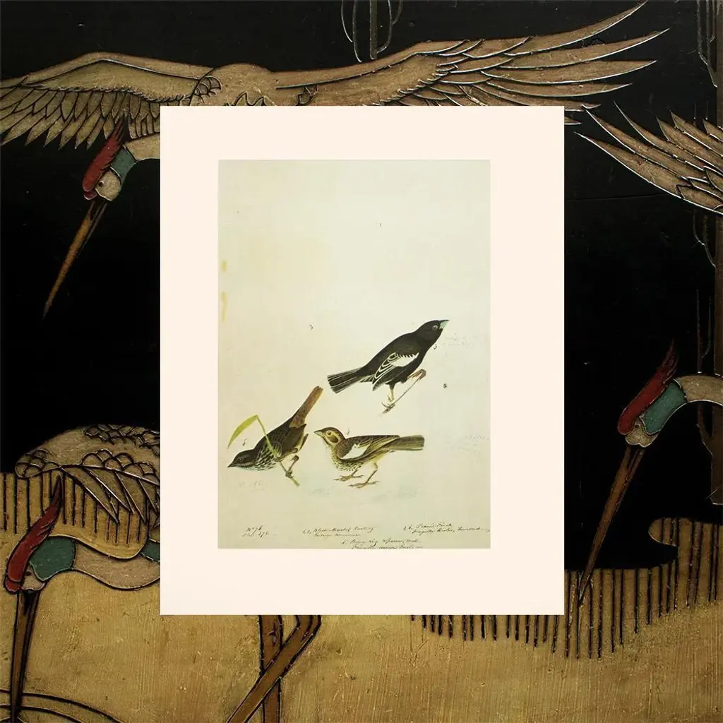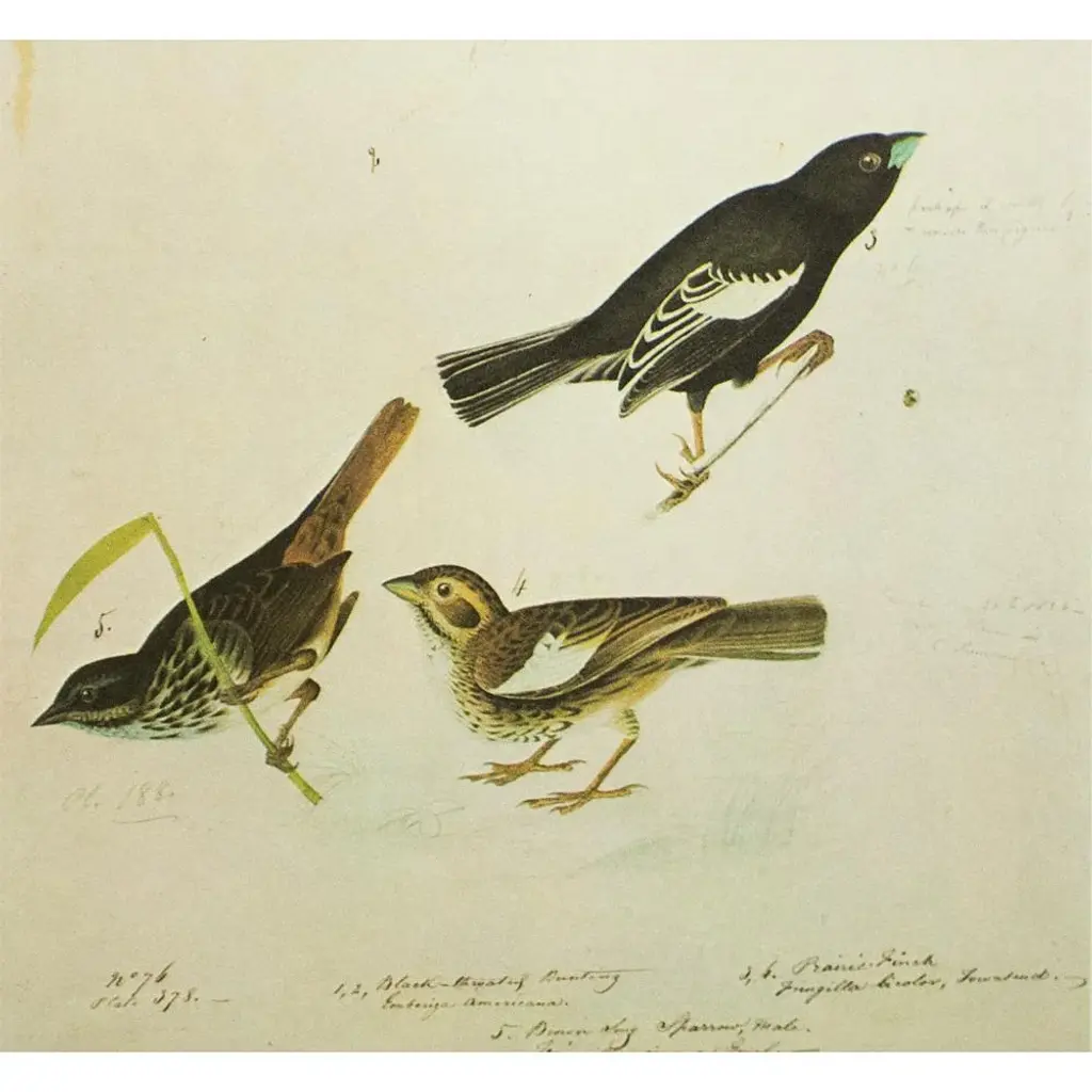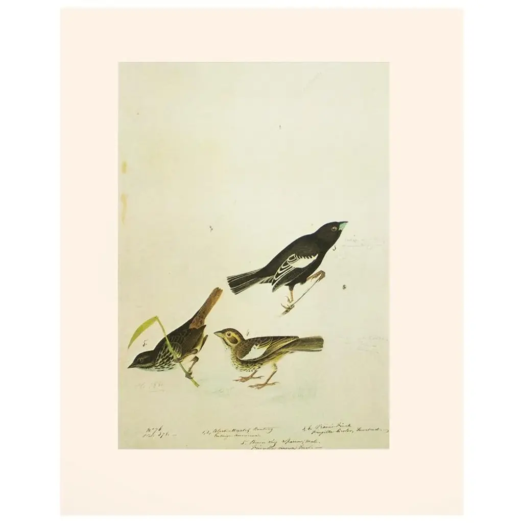 1966 Vintage Cottage Print "Prairie Finch & Brown Song Sparrow" After John James Audubon